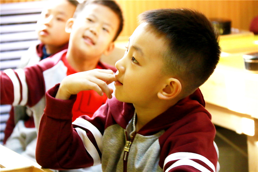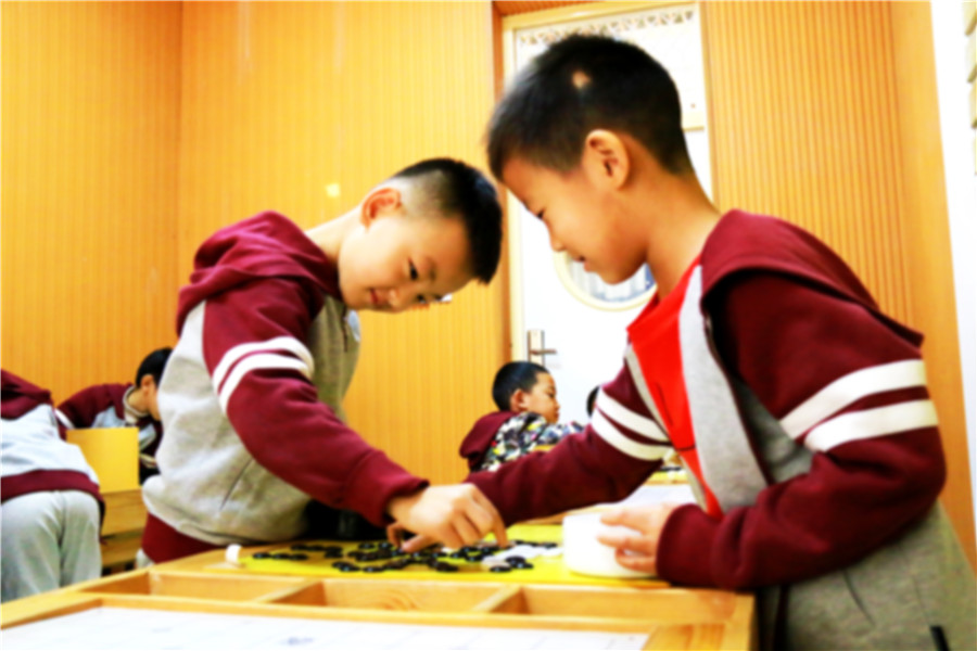 11月29日,石家莊陽光未來國際學(xué)校一年級(jí)圍棋教室內(nèi),昔日活潑好動(dòng)的小朋友們一個(gè)個(gè)正襟端坐,目不轉(zhuǎn)睛地凝視著桌面上的棋盤,一只只小手游走在黑白之間。