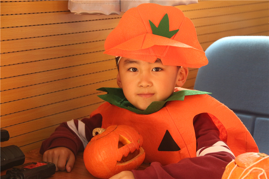 主題活動(dòng),場(chǎng)場(chǎng)是升華。充分利用校園資源,為孩子們創(chuàng)設(shè)國(guó)際化的文化環(huán)境,是陽(yáng)光國(guó)際理解課程的一項(xiàng)重要實(shí)踐。萬(wàn)圣節(jié)、感恩節(jié)、圣誕節(jié)......這些承載著西方文化符號(hào)的節(jié)日,都是我們的天然學(xué)材。