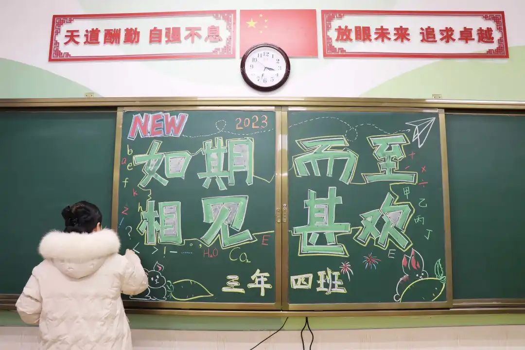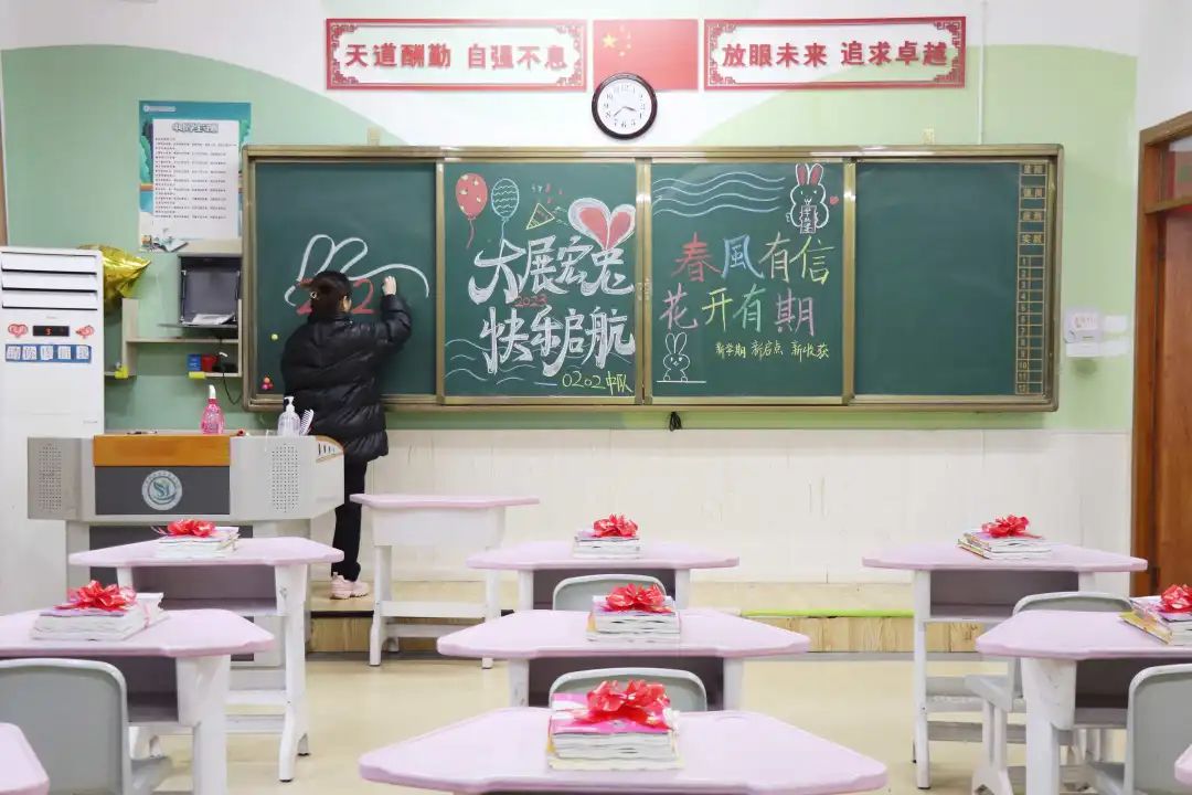 伴著春風(fēng)的和弦,踏著清晨的朝陽。安順陽光未來學(xué)校為了歡迎學(xué)子們回家,老師們早早來到教室用心裝扮大家的家園。同學(xué)們的書籍精心整理,各班的板報也煥然一新。親切溫暖的問候、創(chuàng)意滿滿的教室布置、充滿驚喜的小禮物...用滿滿的儀式感開啟新學(xué)期的篇章。