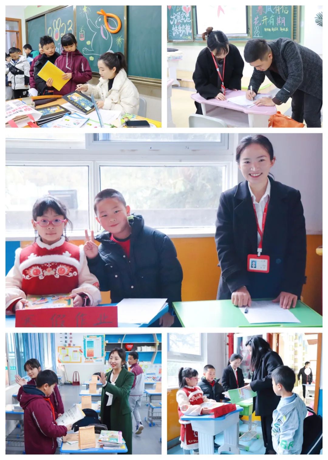 開學(xué)迎接 開學(xué)迎接工作有條不紊地進(jìn)行著,老師們早已在教室等待學(xué)子們歸來。有同學(xué)主動擔(dān)任了“小幫手”,與老師一起收取寒假作業(yè)。