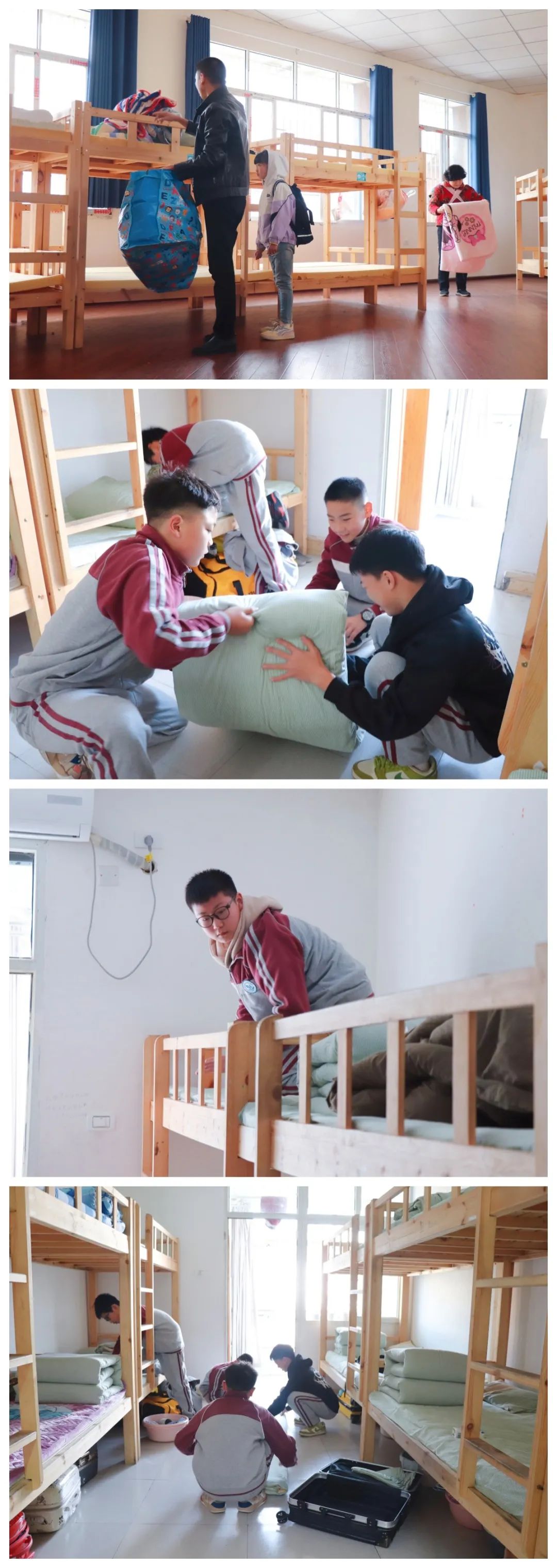 內(nèi)務(wù)整理后的溫馨宿舍是每個人遠(yuǎn)航的避風(fēng)港,是孩子們心靈的寄托,是一個融匯愛心與幸福相交織的捷徑。 家長和同學(xué)們陸續(xù)拿著自己的行李物進(jìn)入學(xué)生宿舍,把物品整齊有序的放置好,同學(xué)們互相幫助,感受勞動后收獲成果的喜悅。