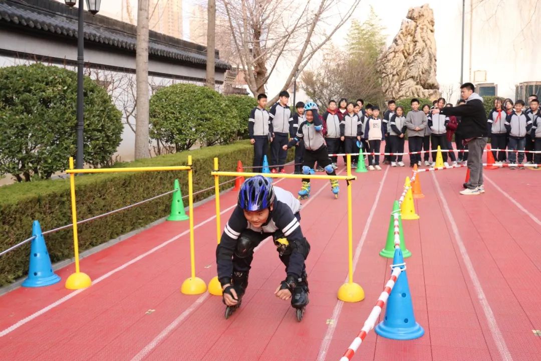 為了豐富校園文化,強(qiáng)健學(xué)生體魄,讓學(xué)生展示自我,增強(qiáng)自信心,學(xué)會(huì)交流與協(xié)作,增進(jìn)與人相處的能力,培養(yǎng)勇于進(jìn)取、頑強(qiáng)拼搏 的意志品質(zhì) 。陽(yáng)光未來(lái)外國(guó)語(yǔ)學(xué)校舉辦了第一屆“我陽(yáng)光.我運(yùn)動(dòng)”輪滑聯(lián)賽活動(dòng)。 2023年2月28下午3:00參賽師生在學(xué)校眾芳樓前集合進(jìn)行運(yùn)動(dòng)員檢錄,參賽的同學(xué)們集體熱身適應(yīng)場(chǎng)地,主持人進(jìn)行了本次開(kāi)場(chǎng)之后輪滑教練楊廣臣老師開(kāi)始了本次的講話(huà)。 輪滑教練楊廣臣做此次活動(dòng)講話(huà)
