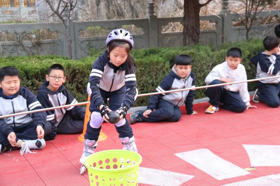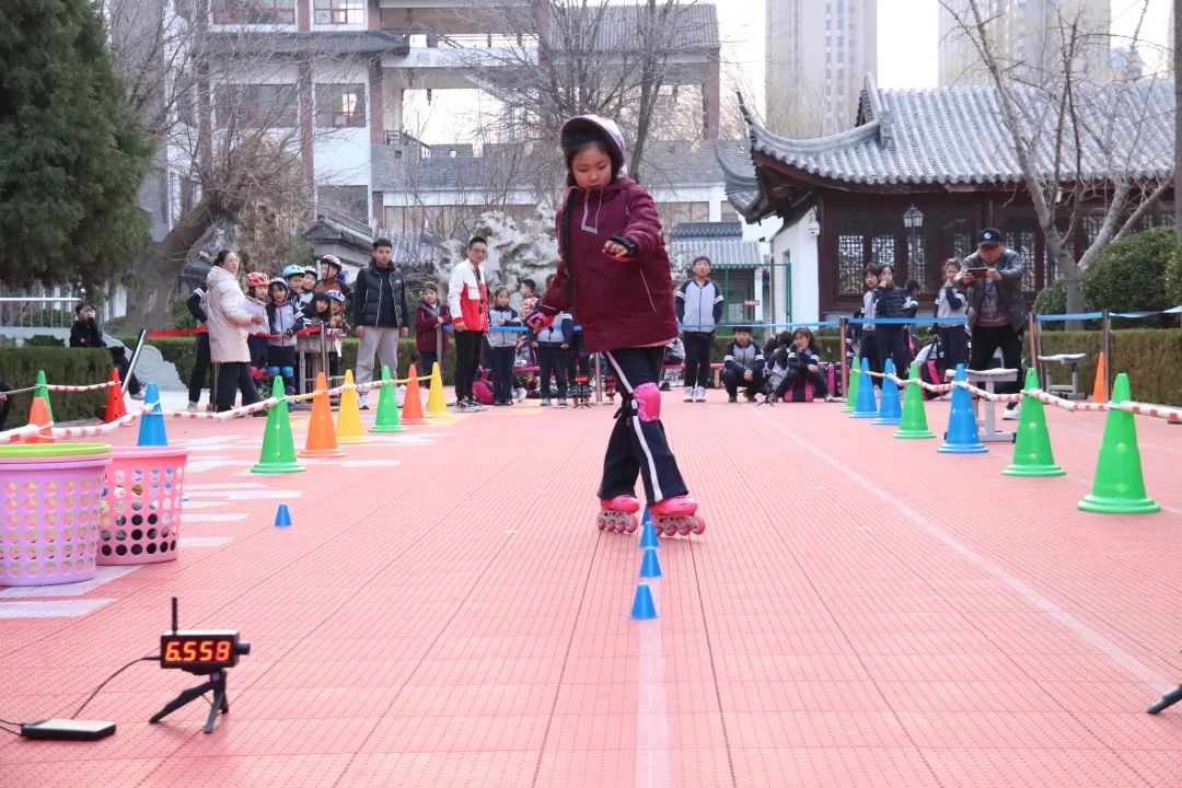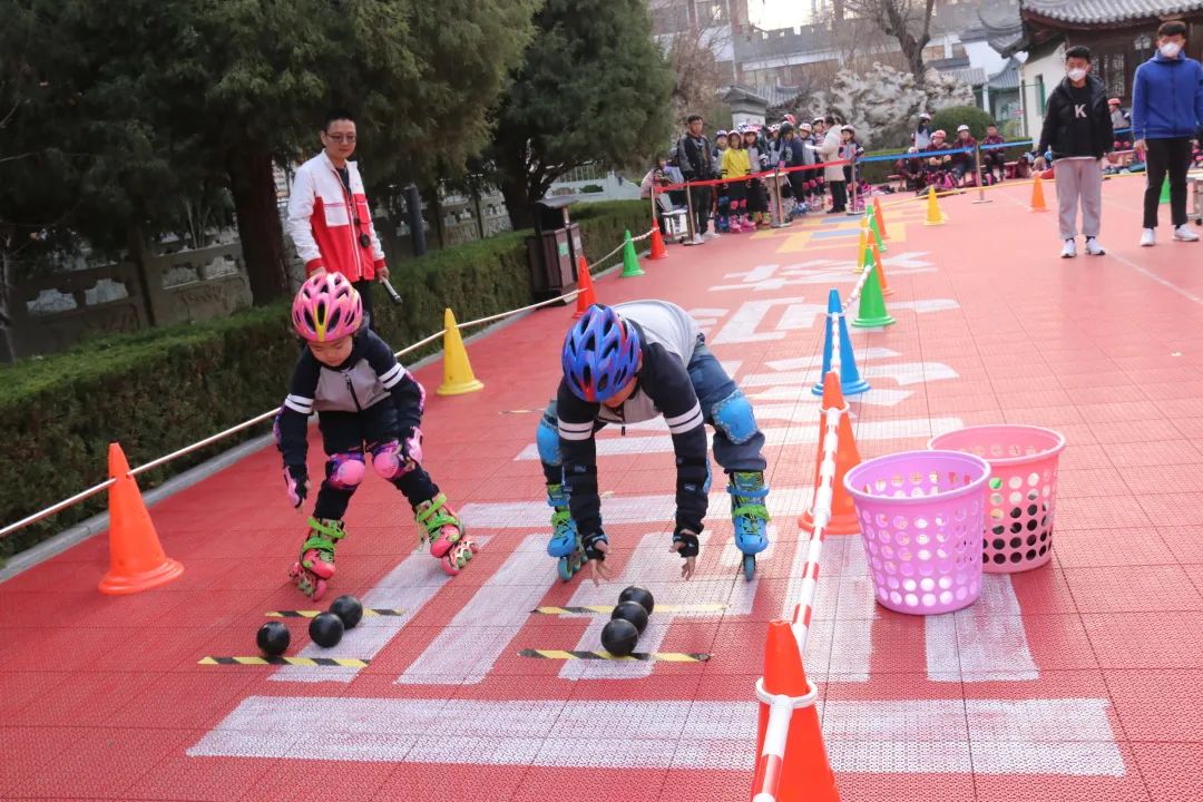 500m個(gè)人計(jì)時(shí)賽,小選手準(zhǔn)備到位,隨著一聲哨響比賽開(kāi)始現(xiàn)場(chǎng)氣氛異常激烈。選手們爭(zhēng)分奪秒,彎腰、屈膝、腳蹬輪滑,雙臂向后甩,飛馳向前去,像似一個(gè)個(gè)的小飛俠一般,你追我趕。在實(shí)心球搬運(yùn)、低桿穿越、障礙跨越項(xiàng)目中,只見(jiàn)有的同學(xué)有條不紊地搬運(yùn)實(shí)心球,旋轉(zhuǎn)自如,低桿超越也發(fā)揮出自己應(yīng)有的水平一瞬而過(guò),障礙跨越中,能夠迅速的反應(yīng)并且順利通過(guò),有的同學(xué)想快速超過(guò)時(shí)不慎摔倒,但卻能勇敢的爬起來(lái)繼續(xù)向前追趕,老師們也在不斷給參賽的隊(duì)員們加油鼓勁,楊老師也在提醒的同學(xué)們注意速度、姿勢(shì)、間距安全等等。氣氛緊張又熱烈,場(chǎng)外啦啦隊(duì)同學(xué)們也在拿著手環(huán),小紅旗吶喊助威,氣氛高漲,呼聲陣陣演繹了一場(chǎng)力與美的視覺(jué)盛宴。