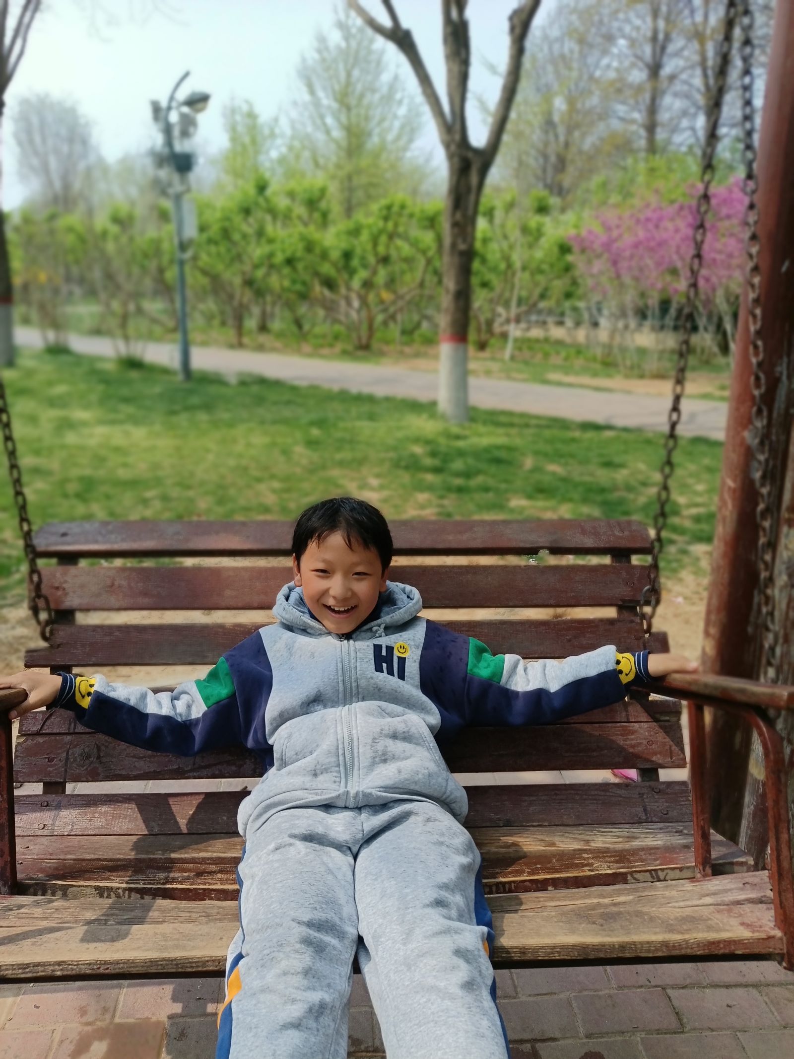 這樣的春日里,陽光學子與家人一起去踏青,享受春光,一起蕩秋千、踢足球,共度親子時光。