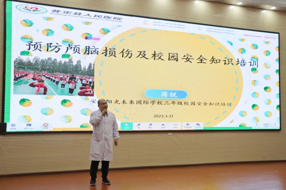 為提高師生安全意識、學(xué)習(xí)醫(yī)學(xué)常識、增強(qiáng)家校溝通,我校邀請小學(xué)部0301班蔣洲駿的家長蔣銳醫(yī)生(普定縣人民醫(yī)院)進(jìn)校開展“預(yù)防顱腦損傷及校園安全知識”講座,共同為孩子創(chuàng)設(shè)良好的成長環(huán)境,推進(jìn)醫(yī)療常識普及教育,為生命撐起堅實的“安全傘”。胡蓉老師進(jìn)行主持,三年級全體師生參加。