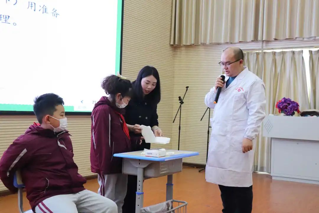 此次講座內(nèi)容豐富,生動有趣。不僅建立了有效的家校溝通,保持家長與學(xué)校教育的一致性,而且通過專業(yè)的醫(yī)學(xué)知識講解也幫助孩子們學(xué)習(xí)了非常多日常生活中的醫(yī)學(xué)知識。 全體學(xué)生向蔣醫(yī)生行少先隊禮,獻(xiàn)上了紅領(lǐng)巾與鮮花向蔣醫(yī)生表示感謝與敬意。