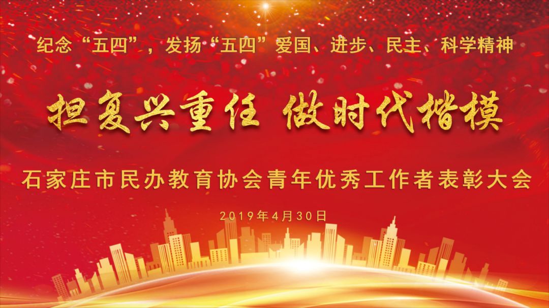 為紀(jì)念“五四運(yùn)動(dòng)”一百周年,4月30日,由石家莊市民辦教育協(xié)會(huì)主辦 河北陽(yáng)光教育集團(tuán)承辦的“擔(dān)復(fù)興重任·做時(shí)代楷模” 優(yōu)秀青年工作者表彰大會(huì)在陽(yáng)光未來國(guó)際學(xué)校順利召開