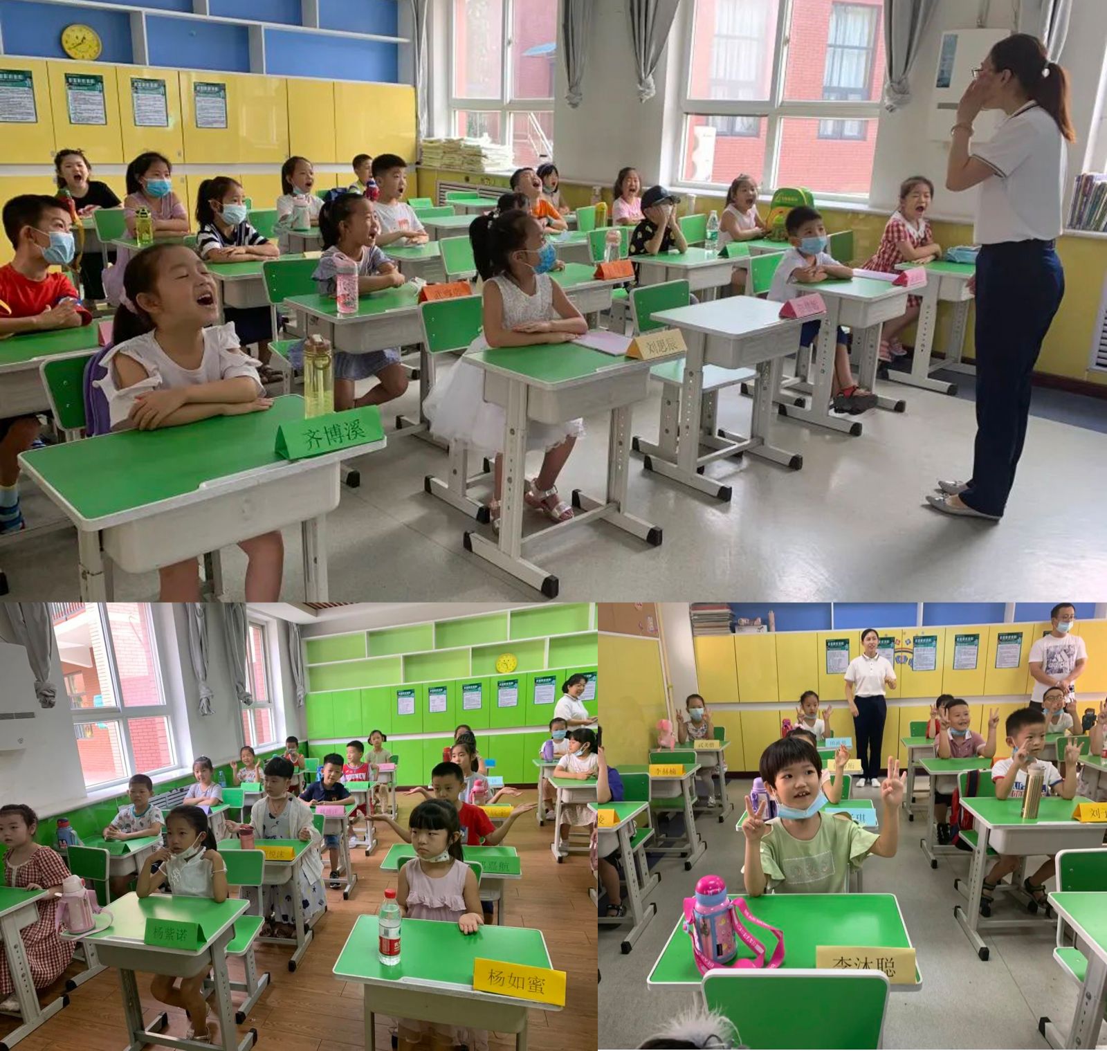 老師和同學(xué)們互相認(rèn)識(shí),微笑相視,積極互動(dòng),老師發(fā)出的指令,孩子們則以活躍的狀態(tài)來(lái)回應(yīng)。