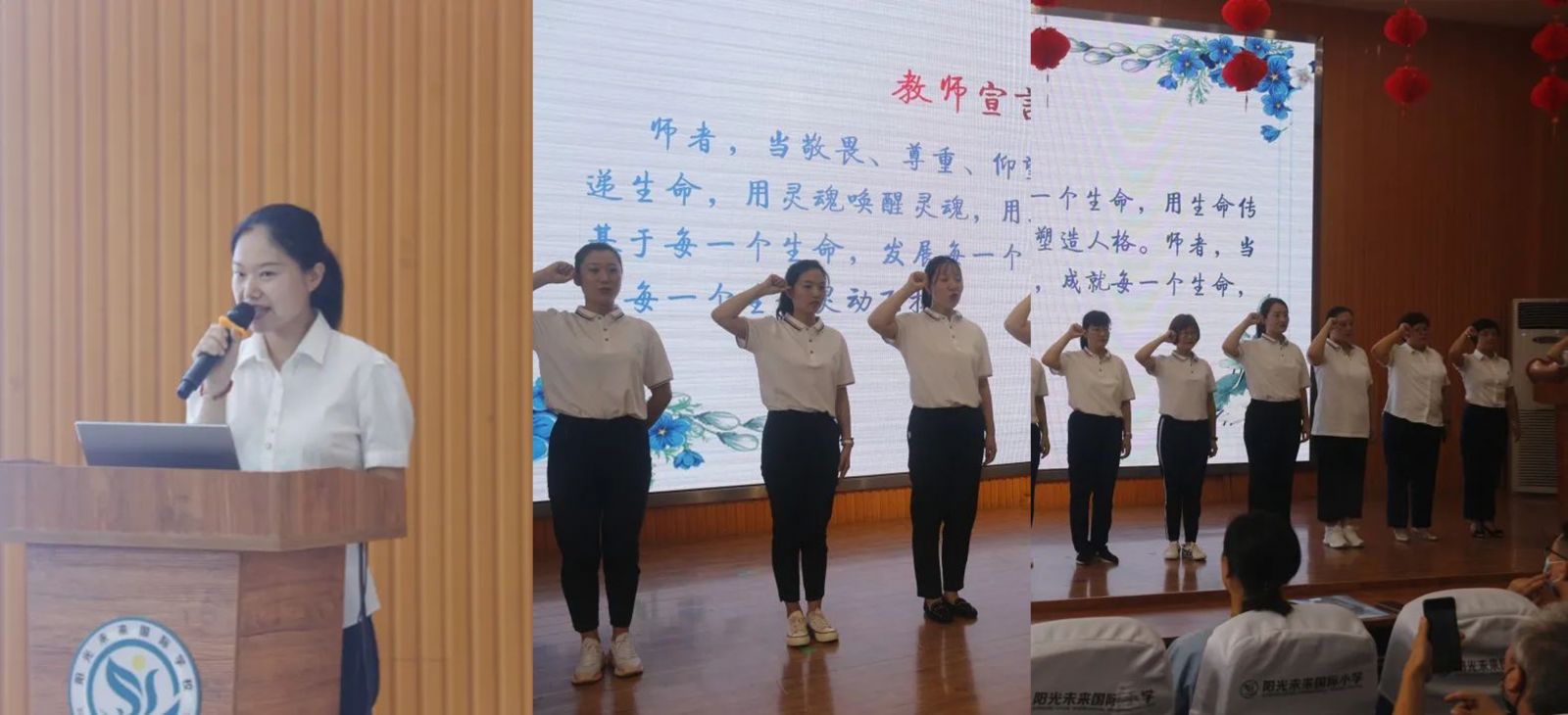 陽(yáng)光未來(lái)國(guó)際小學(xué)寇玉榮校長(zhǎng),就陽(yáng)光未來(lái)的辦學(xué)理念、課程特色等基本情況向家長(zhǎng)們做了詳細(xì)的介紹。無(wú)論是學(xué)本課堂,傳統(tǒng)文化,還是“樂(lè)高、跆拳道、語(yǔ)文素讀、數(shù)學(xué)思維”等特色課程,以及代表孩子全面發(fā)展的“陽(yáng)光五育”等,都是“讓孩子成長(zhǎng)為更好的自己”的理念的重要載體。家長(zhǎng)們?cè)隈雎?tīng)中體會(huì)到學(xué)校從學(xué)生成長(zhǎng)出發(fā),真正讓孩子站在學(xué)校的正中央。 寇校長(zhǎng)結(jié)合自己的30多年的教育教學(xué)經(jīng)驗(yàn),同家長(zhǎng)們分享了陽(yáng)光如何培養(yǎng)孩子的學(xué)習(xí)習(xí)慣與行為習(xí)慣,包括獨(dú)立完成作業(yè),遵守時(shí)間,熱愛(ài)閱讀,善于交流,并如何教導(dǎo)孩子養(yǎng)成善良、謙遜、勤勞等優(yōu)秀品格。希望孩子在家校配合的過(guò)程中不斷突破,不斷成長(zhǎng)。 最后一年級(jí)教師團(tuán)隊(duì),向家長(zhǎng)們宣誓了教師宣言。