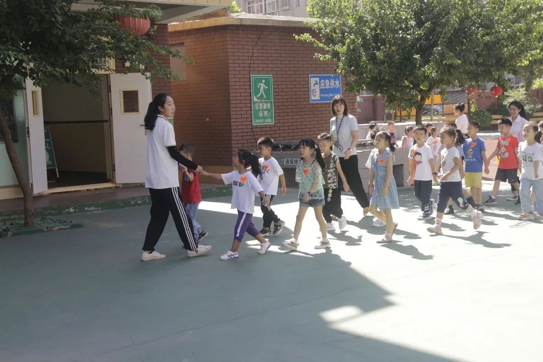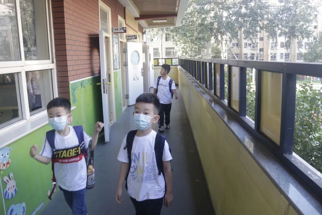 孩子們滿懷著愉悅的心情,迎著晨光在老師的引導(dǎo)下,有序前往班級教室。