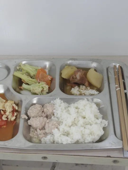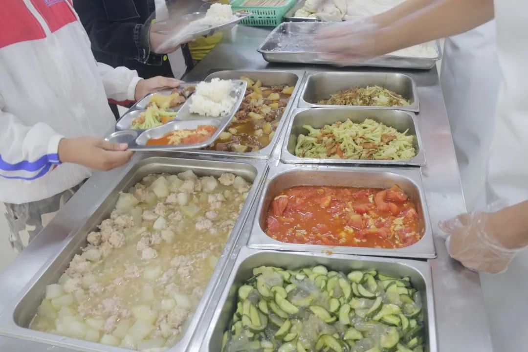 中午,陽光為孩子們精心準(zhǔn)備了可口的飯菜,在老師的引導(dǎo)下,一切井然有序,同學(xué)們排隊分批次錯峰就餐,美味的飯菜,素葷搭配合理,營養(yǎng)均衡,孩子們吃得津津有味。