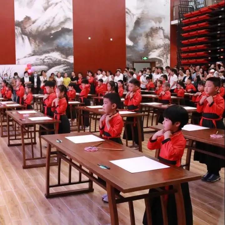 點(diǎn)朱砂寓意孩子能夠開啟智慧,從此耳聰目明、心靈手巧。開筆禮,寫一個(gè)“人”字,在孩子的啟蒙教育階段,先學(xué)會(huì)做人…… 2020年9月13日上午,德州陽(yáng)光未來國(guó)際學(xué)校開學(xué)典禮圓滿落幕,與眾不同的是此次開學(xué)典禮中設(shè)計(jì)了拜師禮和開筆禮兩個(gè)特殊環(huán)節(jié),朱砂啟智、擊鼓鳴志、啟蒙描紅、奉匜沃盥、禮拜孔子充滿了儀式感。德州24小時(shí)、奏嘛新聞、齊魯壹點(diǎn)、海報(bào)新聞、直播德州、德州晚報(bào)等各大官方媒體相繼轉(zhuǎn)發(fā)報(bào)道,引發(fā)強(qiáng)烈社會(huì)反響。