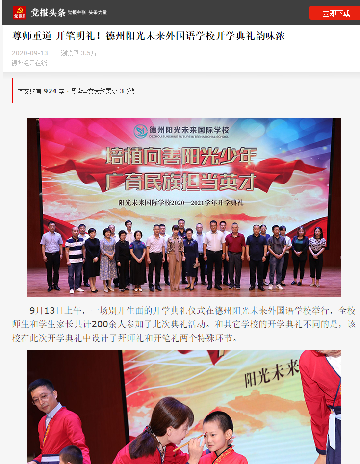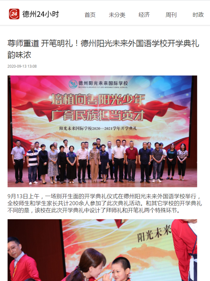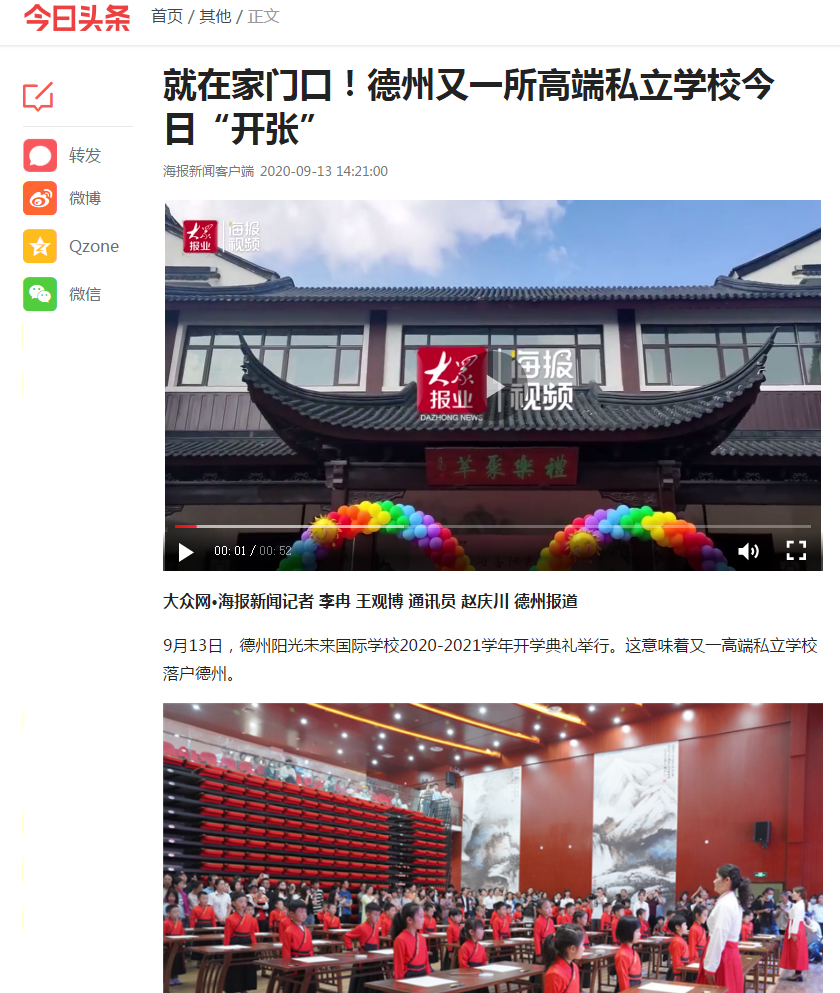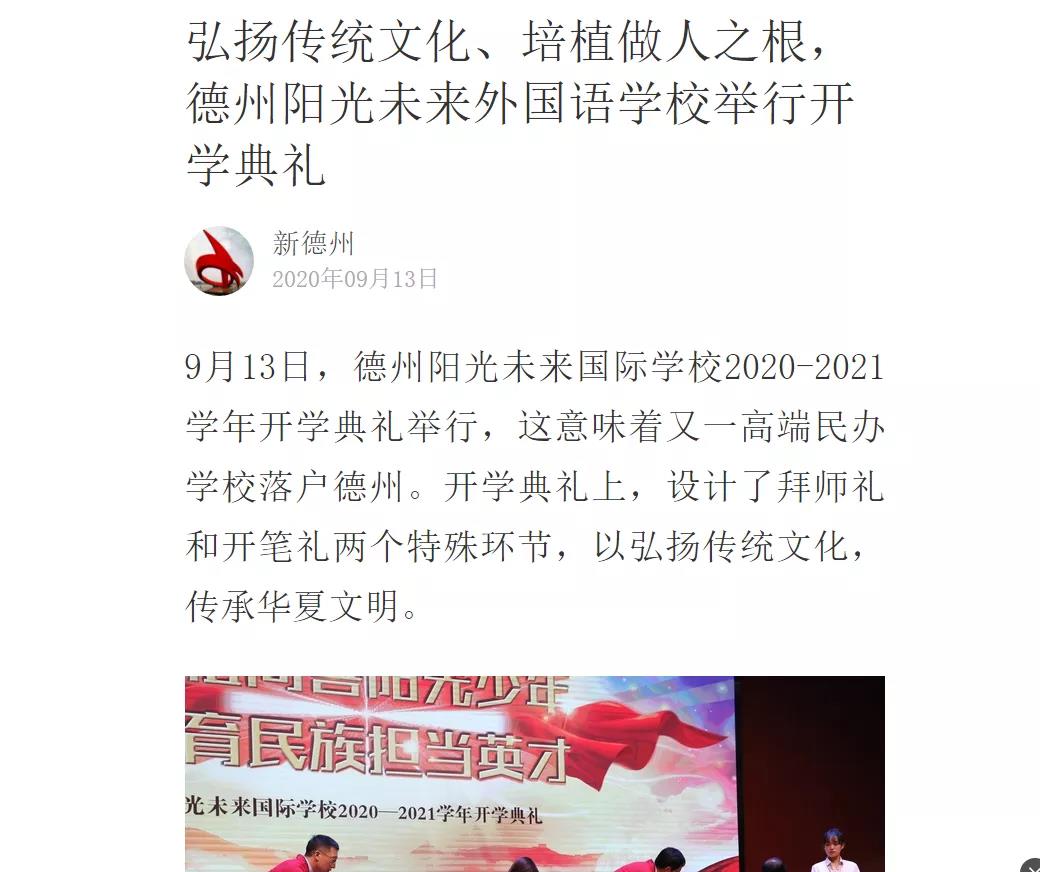 讓我們跟隨各大媒體一覽 德州陽(yáng)光未來國(guó)際學(xué)校 此次開學(xué)典禮的盛況吧 ?。?!