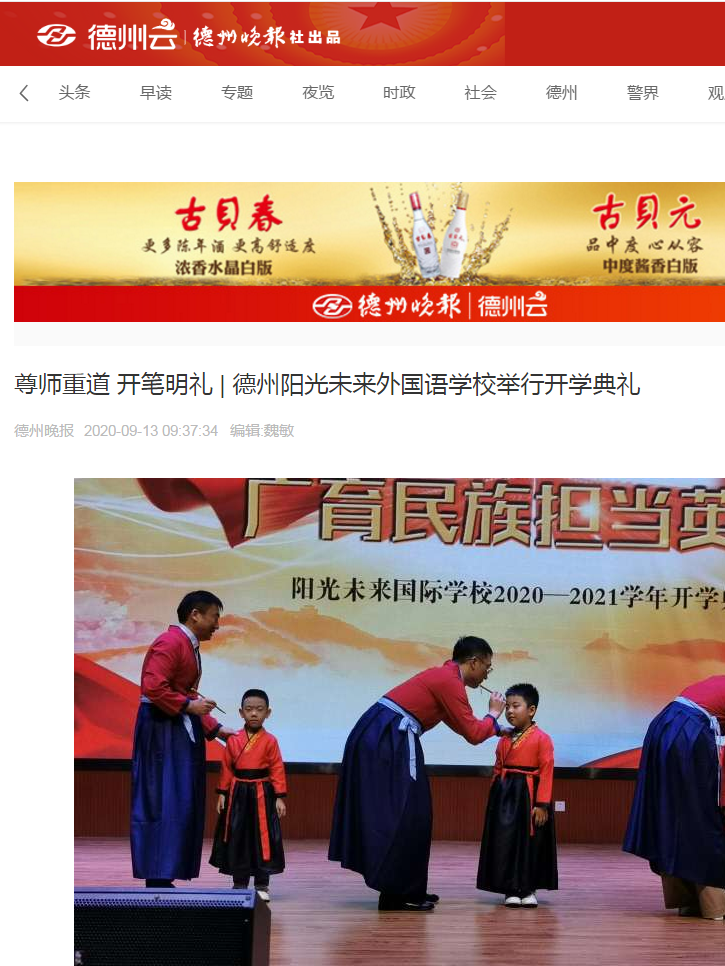 德州日?qǐng)?bào):尊師重道 開筆明禮!德州陽(yáng)光未來外國(guó)語(yǔ)學(xué)校開學(xué)典禮韻味濃