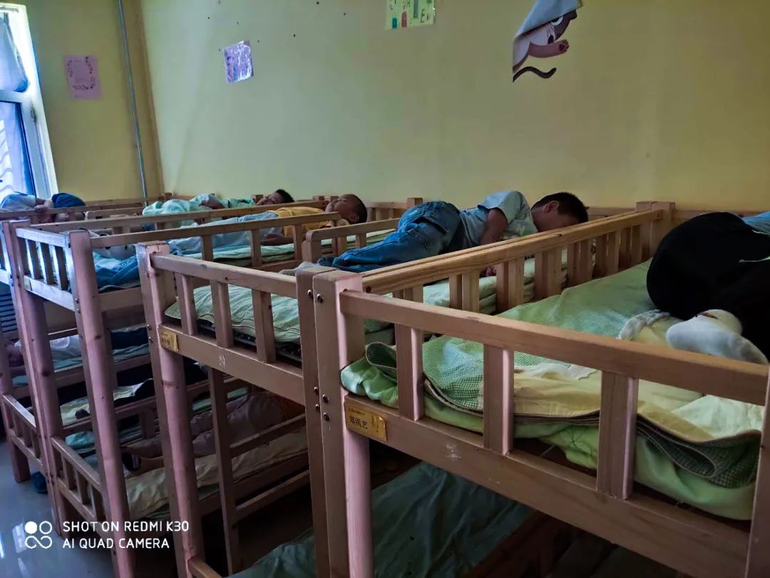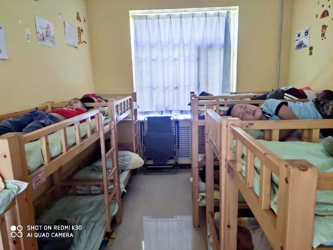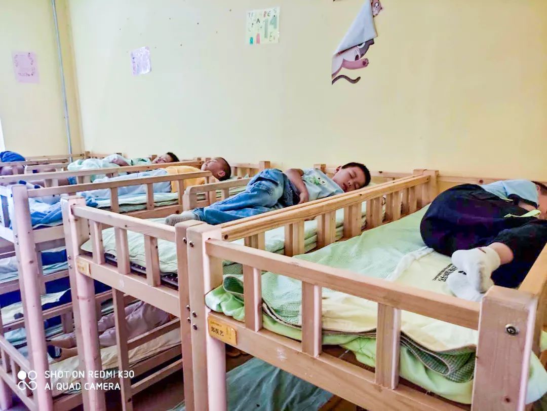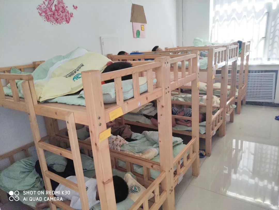 窗明幾凈 12:30分進(jìn)入午休時(shí)間,學(xué)生們安安靜靜地休息。13:40分起床,孩子們?cè)诶蠋煹闹笇?dǎo)下,疊被子、擺放物品等。