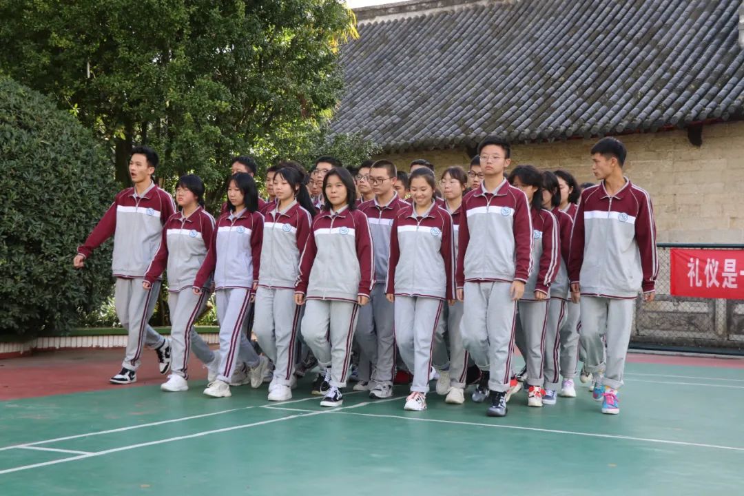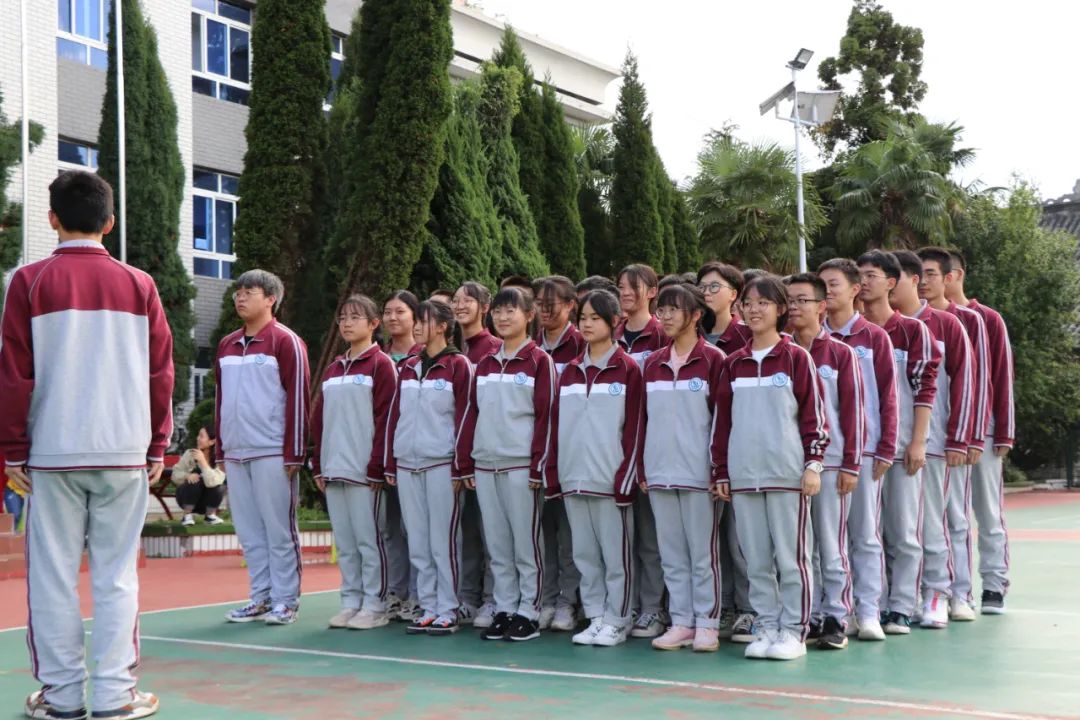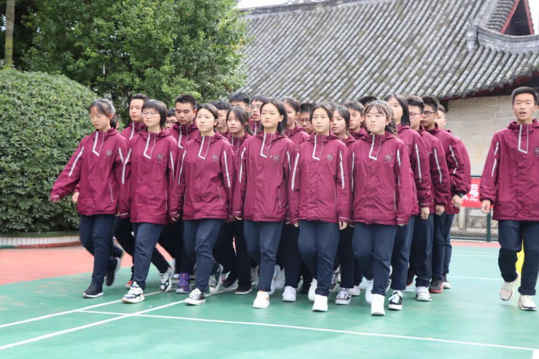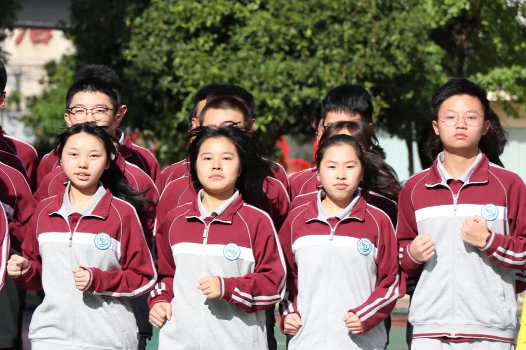 在明媚的陽光下,伴著同學(xué)們響亮的口號(hào)聲、整齊劃一的步伐聲,跑操比賽開始了。本次比賽由高中部每個(gè)班級(jí)抽簽決定比賽順序,每個(gè)班級(jí)為一個(gè)方隊(duì)舉行。評(píng)委們從口號(hào)指揮、服裝及隊(duì)列、精神狀態(tài)等幾個(gè)方面進(jìn)行評(píng)分。