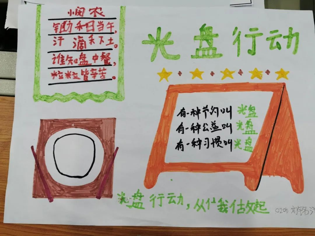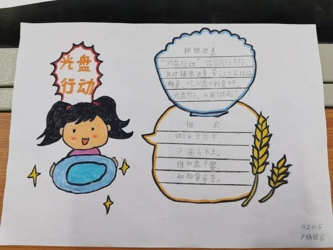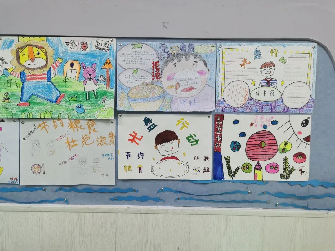 在專題活動(dòng)中,小學(xué)部老師們組織班會(huì)課開展學(xué)習(xí),悉心講解糧食來之不易,制作專題手抄報(bào),讓孩子們知道為什么要節(jié)約糧食?