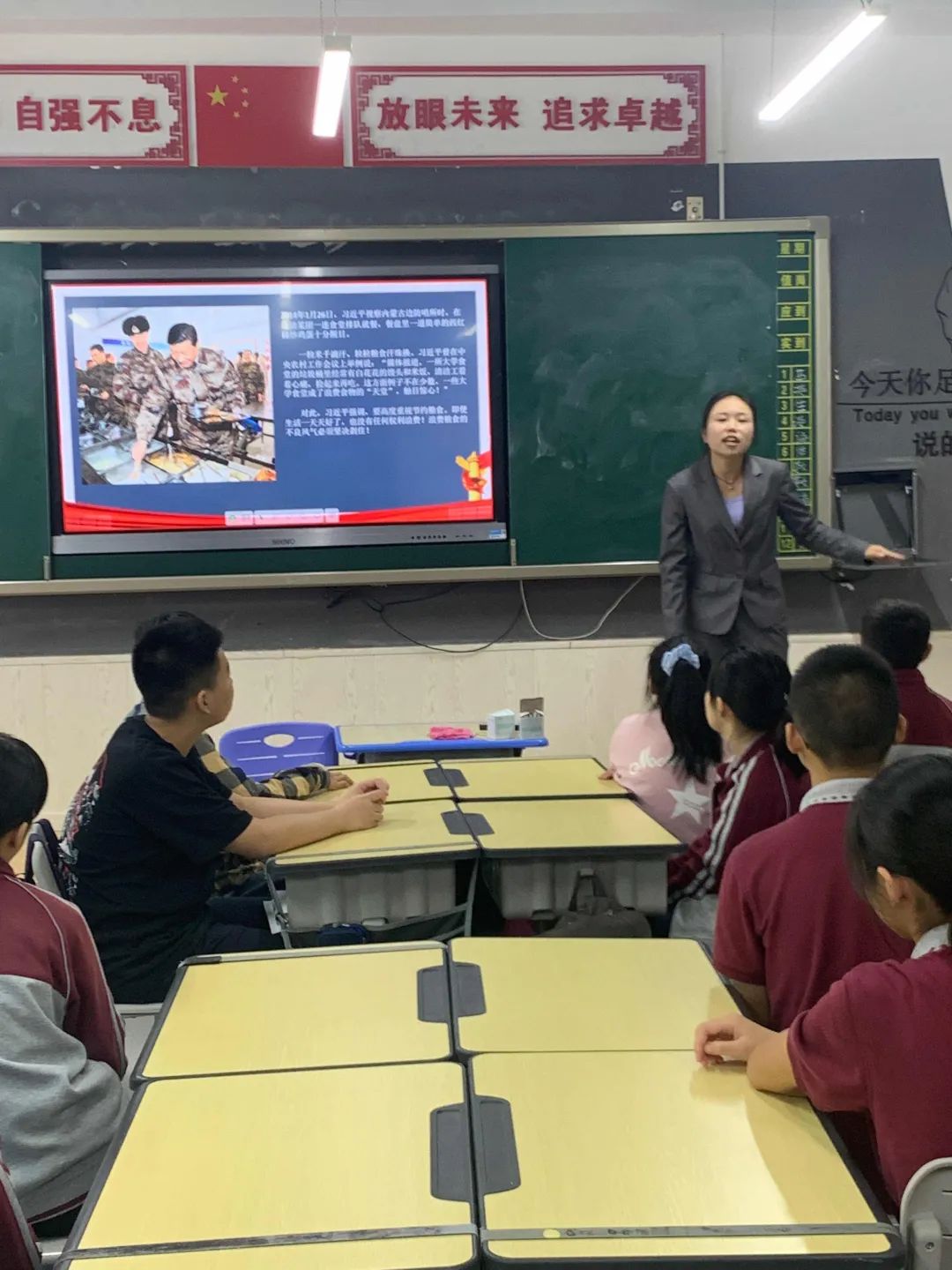 初中部和高中部在繁忙的課業(yè)之余,也組織主題班會(huì)。在食堂也進(jìn)行了“光盤”監(jiān)督,倡導(dǎo)孩子們一起對(duì)浪費(fèi)說“不”。孩子們不僅在班會(huì)課上學(xué)習(xí)得一絲不茍,在食堂里也將三餐吃得十分干凈。理論和實(shí)踐相結(jié)合的教育模式,讓《憫農(nóng)》精神不僅僅是背誦在孩子們口中的詩句,更轉(zhuǎn)變成了照進(jìn)日常生活的美好品質(zhì)。