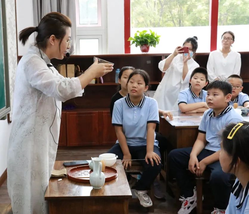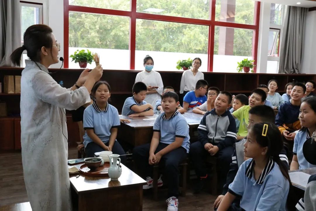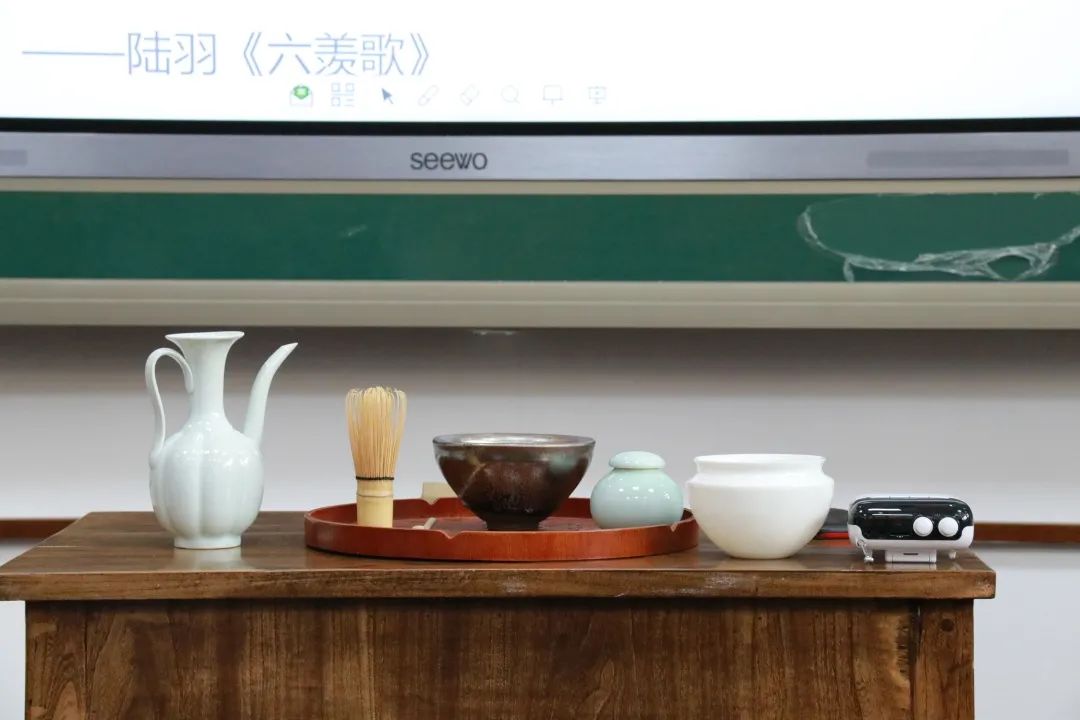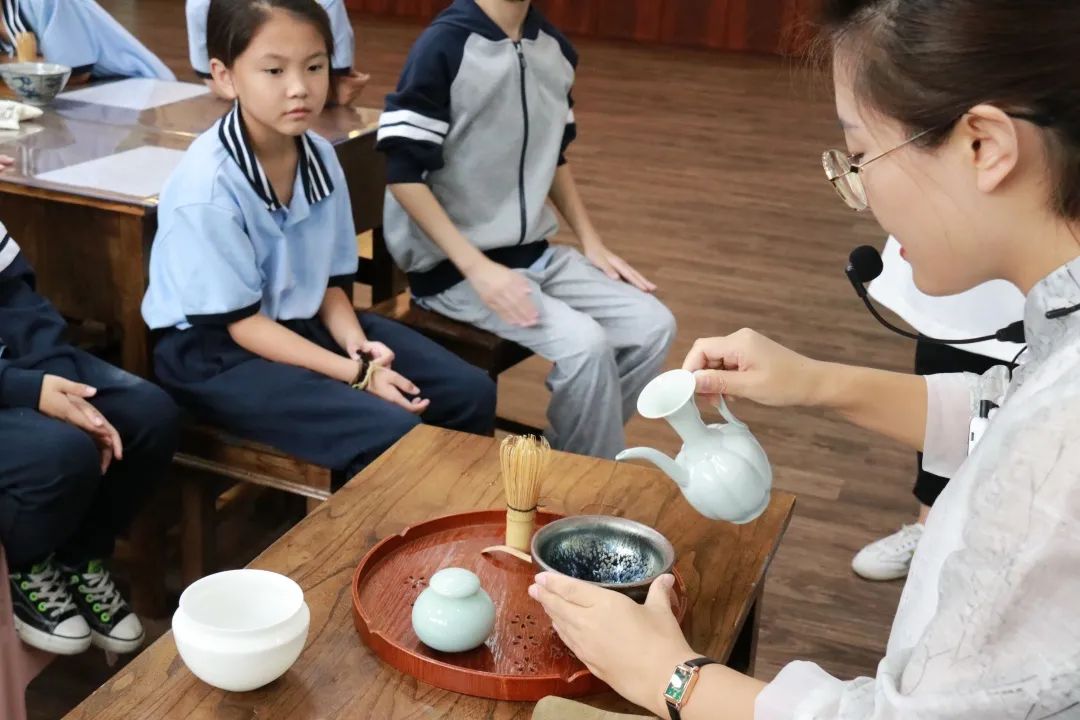 介紹茶具 老師向?qū)W生詳細(xì)介紹了所使用的茶具,其中茶筅是同學(xué)們初次見到,初次使用的茶具。