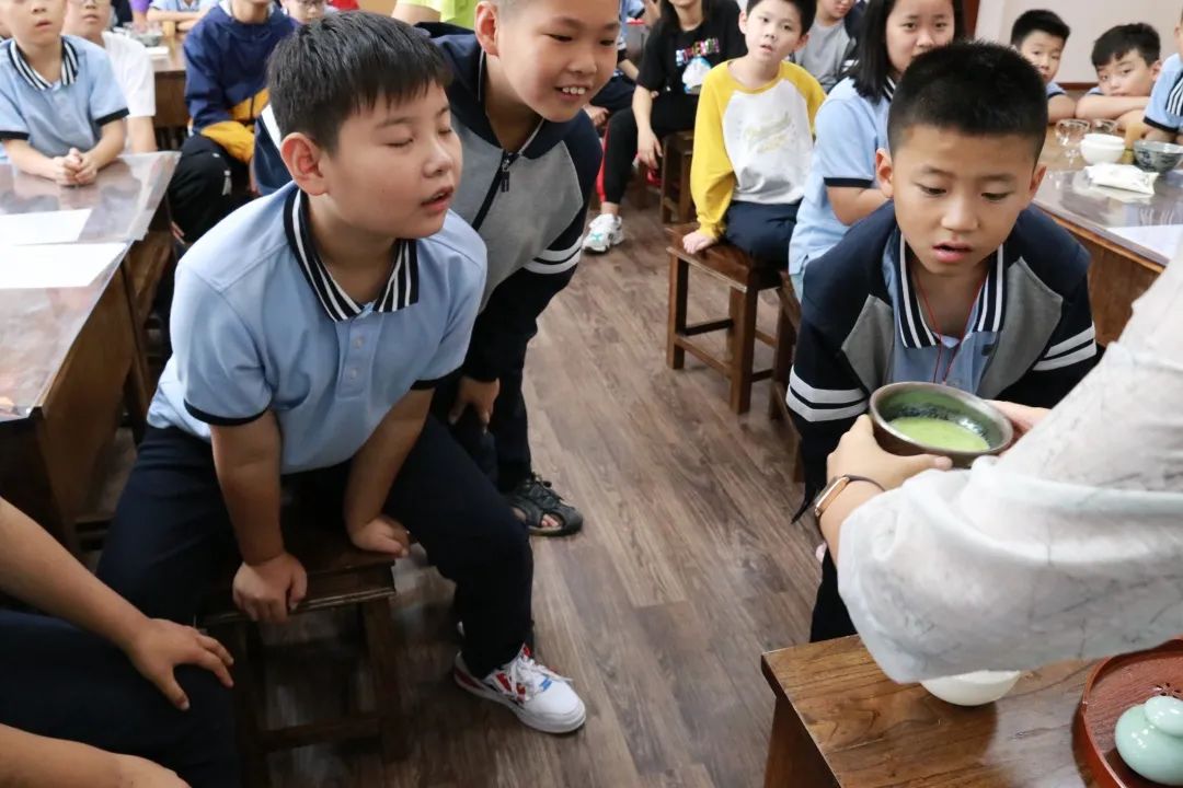 擊拂 同學(xué)們輪流快速用茶筅擊拂,希望自己的茶湯早些咬盞。