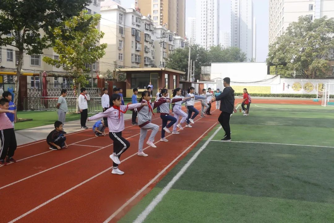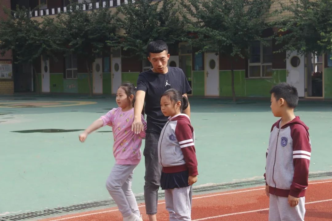 體育課上,從整隊(duì)、口號(hào)、包括一靜一動(dòng)每個(gè)動(dòng)作、每個(gè)細(xì)節(jié),體育老師們都為孩子示范、指導(dǎo)、和糾正。
