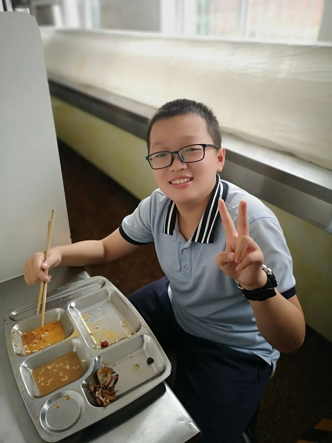 “一粥一飯,當思來之不易;半絲半縷,恒念物力維艱。”來到餐廳門口,我們可以聽到陽光學(xué)子齊聲喊著口號“無聲餐廳,光盤行動”。