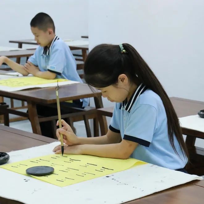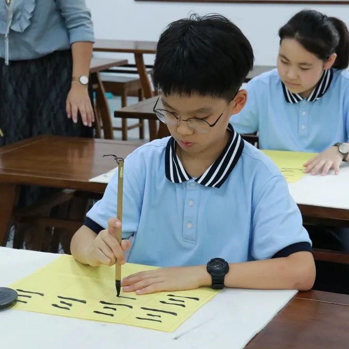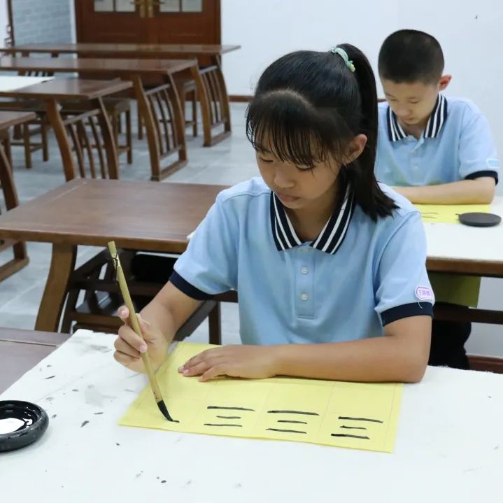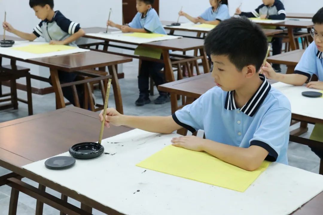 三年級(jí)以上的學(xué)生必修書(shū)法課學(xué)習(xí)毛筆字,一筆一劃凝神靜氣,橫平豎直,既練習(xí)了書(shū)法又能鍛煉學(xué)生的專(zhuān)注力。