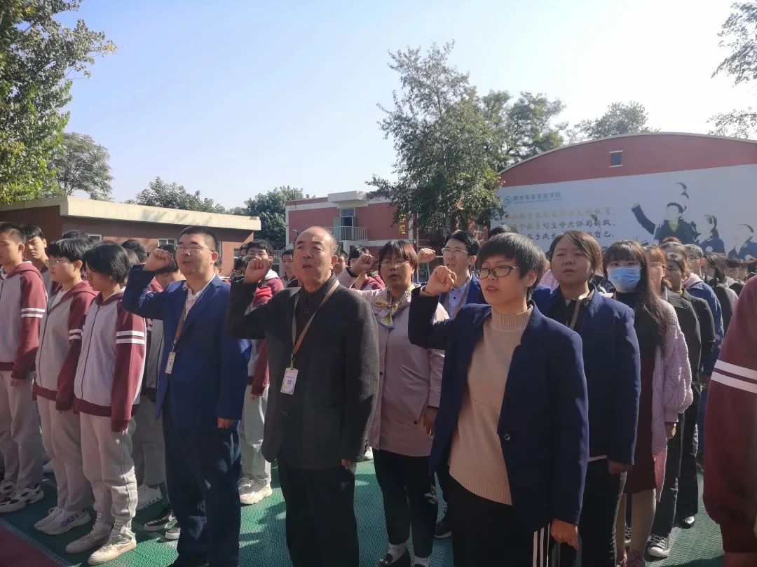 2020年10月12日陽光未來實(shí)驗(yàn)學(xué)校全體師生舉行每周升旗儀式。