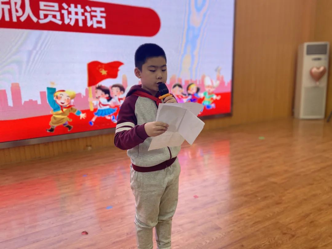 二四班智弈程同學(xué)代表了新少先隊(duì)員進(jìn)行了講話。
