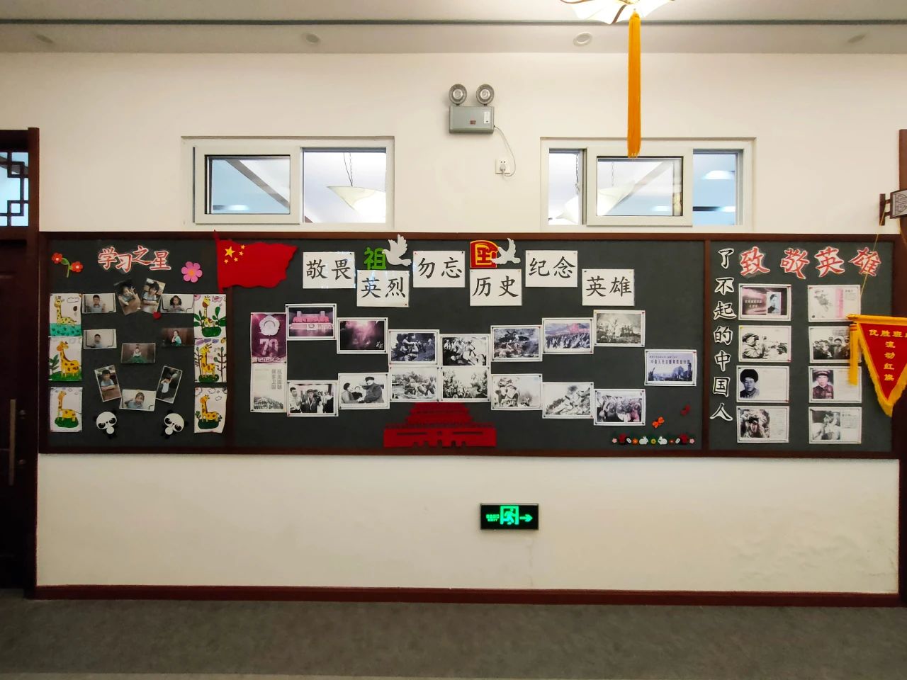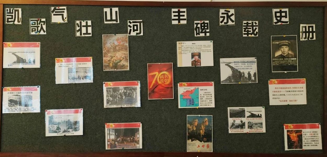 受志愿軍的英雄事跡所感動(dòng),陽(yáng)光學(xué)子與老師們一起搜集抗美援朝歷史事跡、歷史照片等,為緬懷先烈、銘記歷史做出各自班級(jí)的主題文化墻。