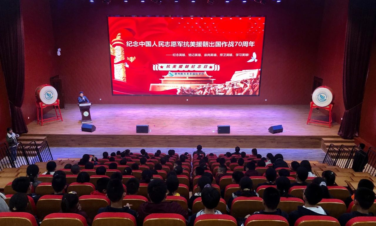 10月24日晚,在學(xué)校領(lǐng)導(dǎo)與老師們的組織下,陽(yáng)光學(xué)子在大報(bào)告廳中觀看為紀(jì)念中國(guó)人民志愿軍抗美援朝出國(guó)作戰(zhàn)70周年,所拍攝的大型電視記錄片——《為了和平》
