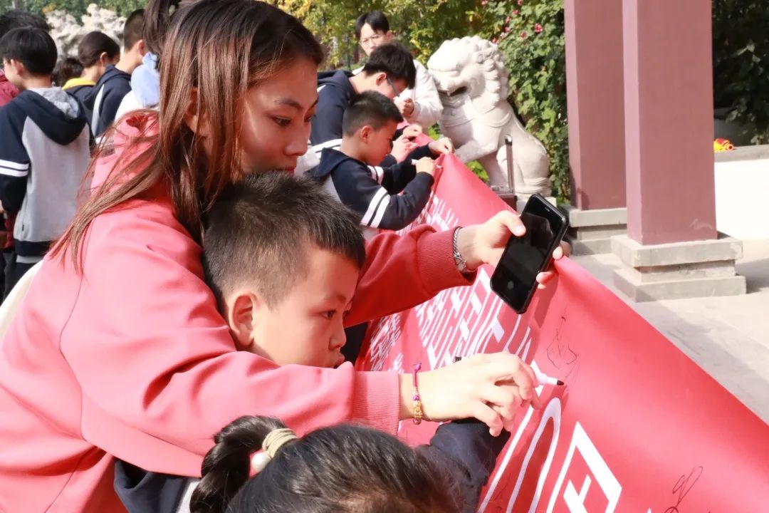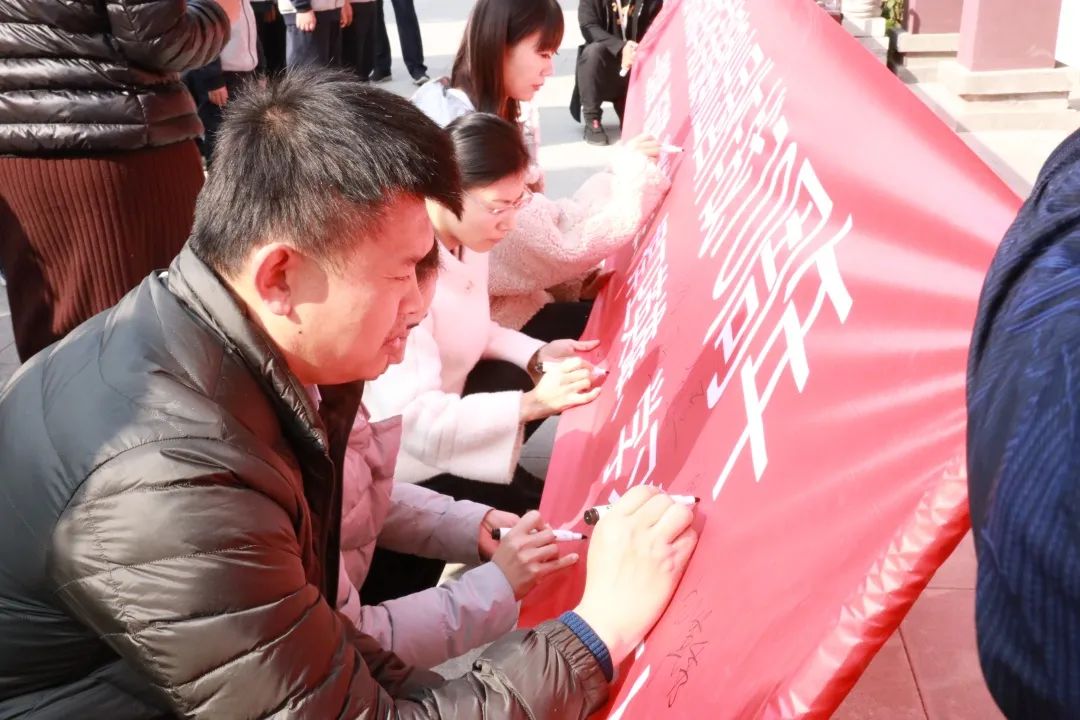 同學(xué)們拿起筆,在校長(zhǎng)和老師們的帶領(lǐng)下,在橫幅上鄭重的簽下自己的名字,今天,我們銘記歷史,砥礪前行!