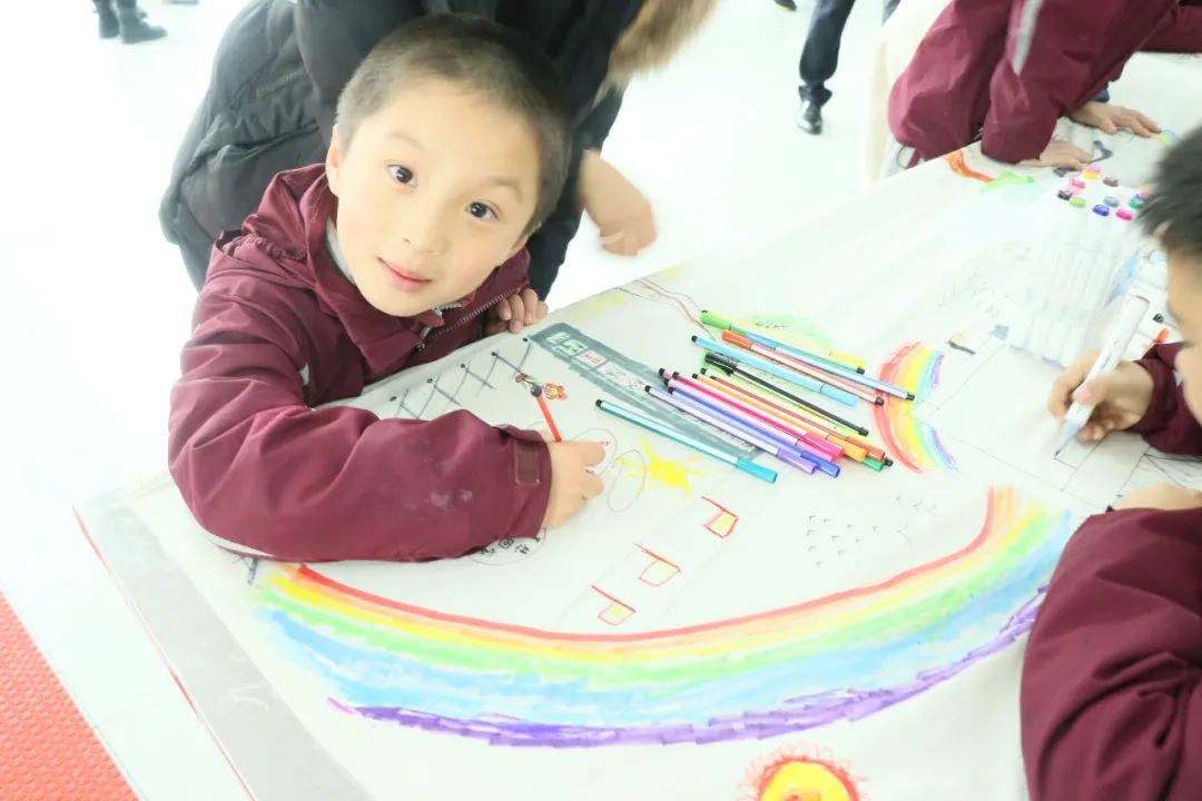最有趣的則是陽光畫卷了!同學(xué)們拿起手中的畫筆,在每個班專屬的畫卷上發(fā)揮充分的想象用繪畫的形式,來表達自己的內(nèi)心世界。他們用自己淳樸的童心和稚嫩的小手,在長卷上盡情揮灑,一幅幅栩栩如生的畫面躍然于畫布上。
