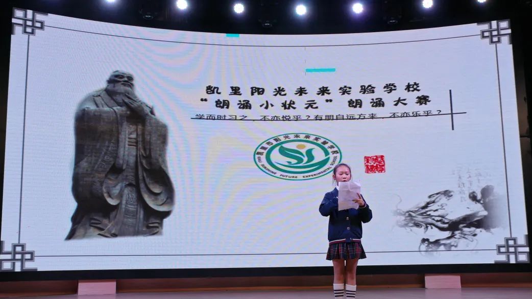 朗誦小狀元 經(jīng)典誦讀大賽 為了讓陽光學(xué)子愛上語文,愛上閱讀,讓閱讀快樂起來,為中華文明發(fā)聲。2020年11月19日,凱里陽光未來實驗學(xué)校在報告廳舉辦了“朗誦小狀元”誦讀大賽,使陽光學(xué)子通過經(jīng)典誦讀,了解優(yōu)秀的中華文化和民族精神,增強民族自豪感和愛國主義情懷,弘揚中華優(yōu)秀的傳統(tǒng)文化。