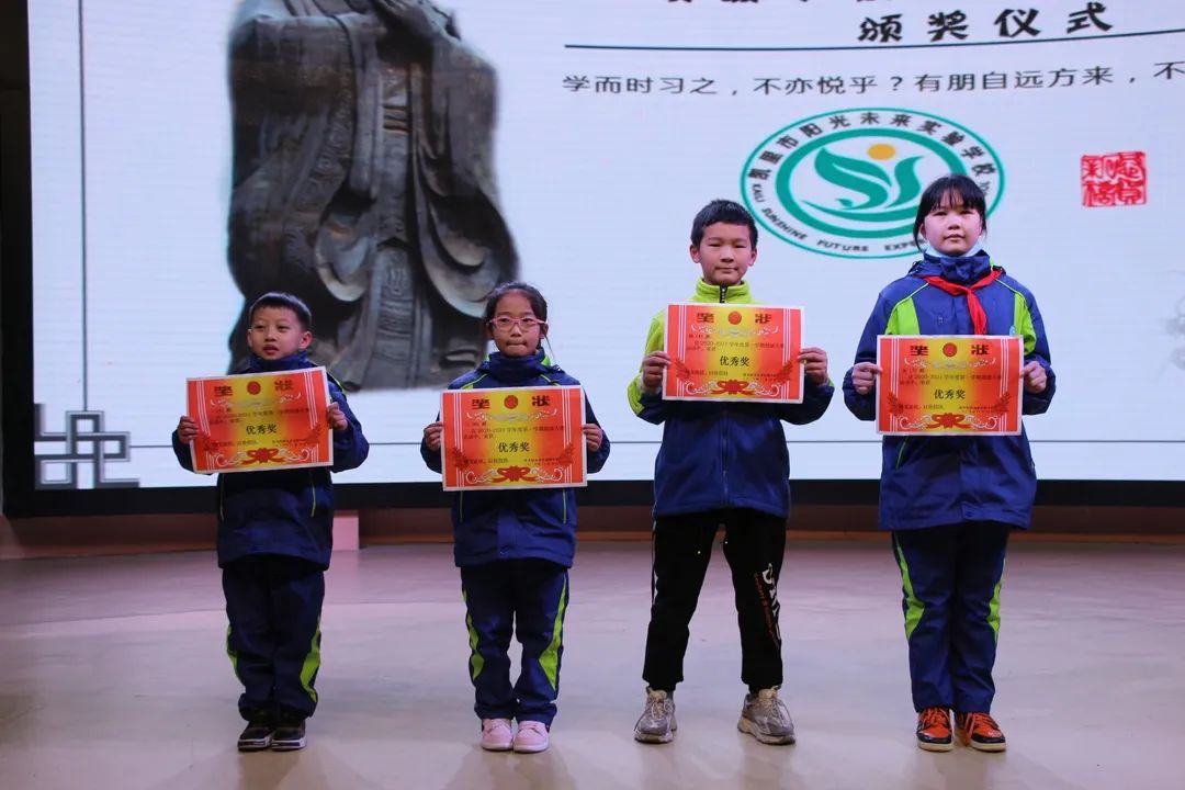 頒獎儀式 2020年12月1日在報告廳進行頒獎儀式,李校長為獲獎學(xué)生和班級頒發(fā)獎品,指導(dǎo)老師攜獲獎學(xué)生一起上臺領(lǐng)獎。獲得獎品的陽光學(xué)子們,是那么自豪、開心。