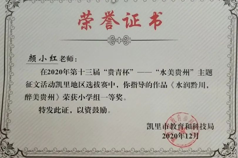 12月9日,為了紀(jì)念“一二·九”運(yùn)動(dòng),提高學(xué)生的愛(ài)國(guó)意識(shí),引導(dǎo)廣大學(xué)生繼承和發(fā)揚(yáng)“一二·九”運(yùn)動(dòng)的光榮傳統(tǒng)與愛(ài)國(guó)精神,由凱里教科局主辦、凱里市青少年活動(dòng)中心承辦的第十三屆“貴青杯”凱里地區(qū)優(yōu)秀作品頒獎(jiǎng)儀式在凱里市青少年活動(dòng)中心舉行,凱里陽(yáng)光未來(lái)實(shí)驗(yàn)學(xué)校榮獲佳績(jī)。