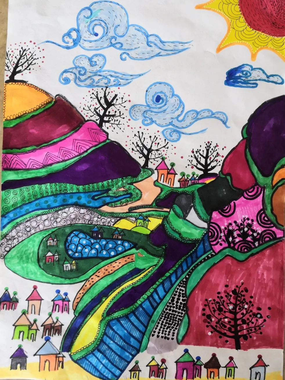 獎(jiǎng)項(xiàng):三等獎(jiǎng) 姓名:徐錫潔 組別:小學(xué)組 作品:《七彩梯田》 指導(dǎo)教師:羅清照
