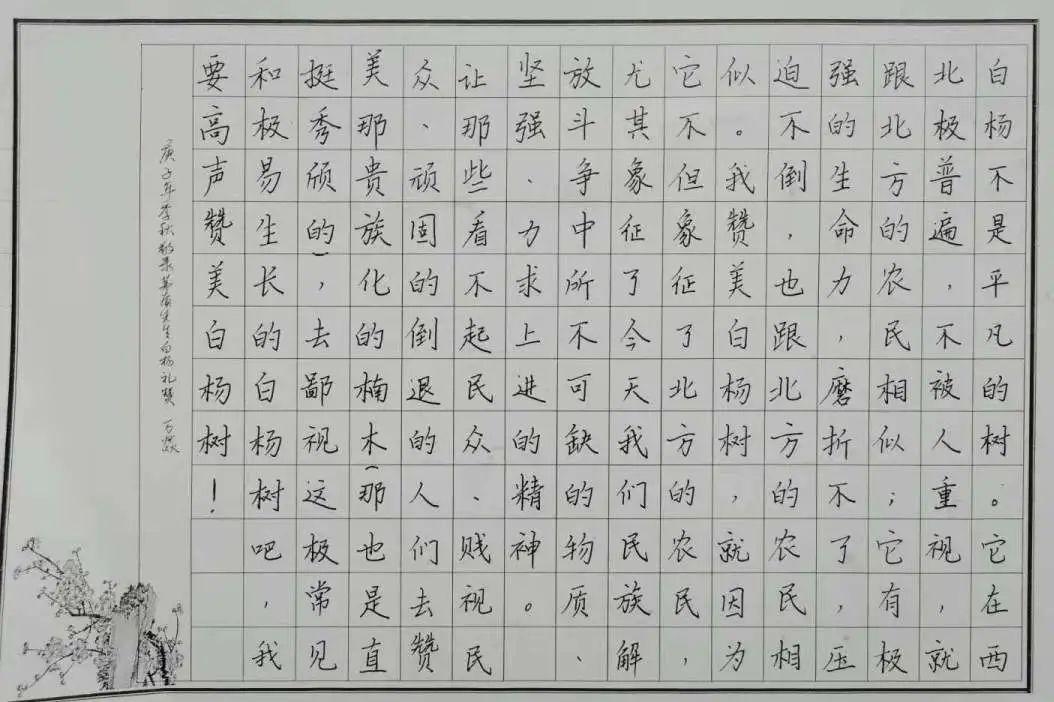 獎(jiǎng)項(xiàng):二等獎(jiǎng) 姓名:萬(wàn)燚 類別:硬筆 作品:《白楊禮贊》 指導(dǎo)教師:時(shí)功科