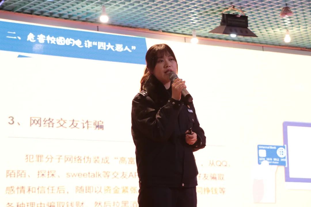 活動(dòng)中,西秀區(qū)公安局的警官們?yōu)橥瑢W(xué)們講解了當(dāng)前反電信網(wǎng)絡(luò)詐騙工作的嚴(yán)峻形勢(shì),以及近期開(kāi)展“斷卡”行動(dòng)的具體內(nèi)容和重要意義,詳細(xì)介紹了常見(jiàn)電信網(wǎng)絡(luò)詐騙的手段及對(duì)非法買(mǎi)賣(mài)手機(jī)卡、銀行帳戶(hù)等行為開(kāi)展的懲戒措施和所承擔(dān)的法律后果,警醒大家進(jìn)一步提高防范意識(shí),共同維護(hù)校園安全。