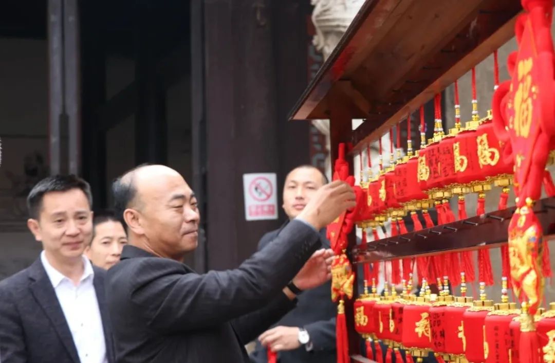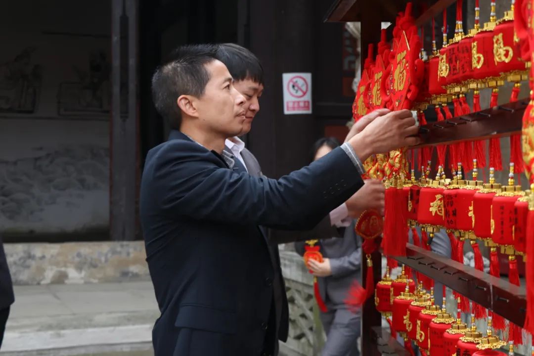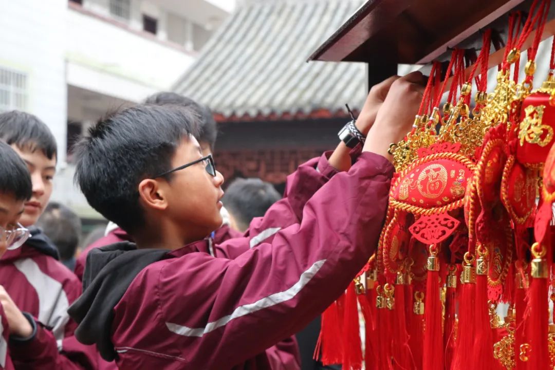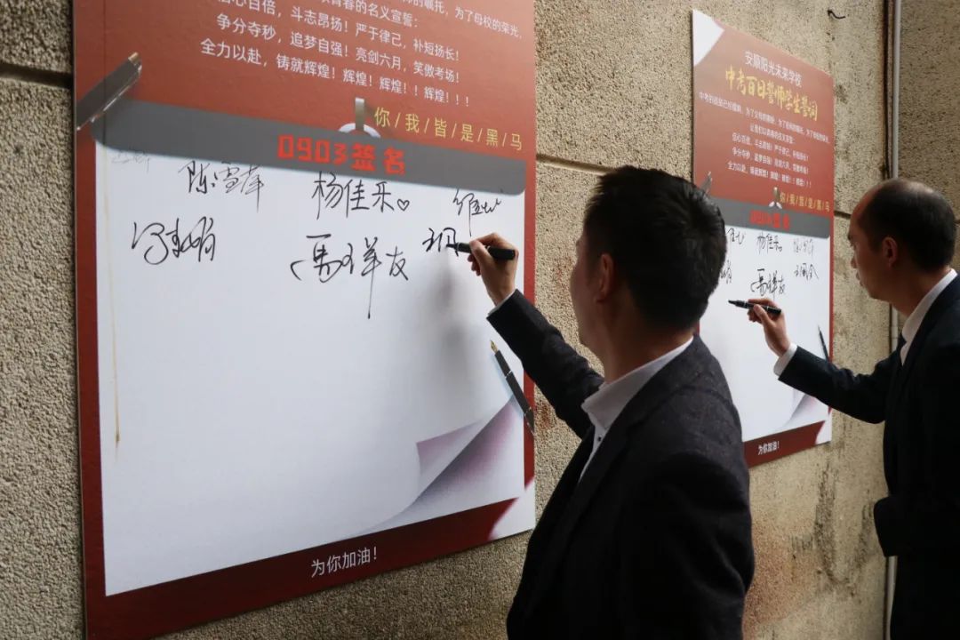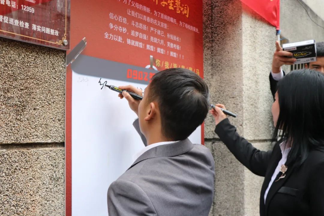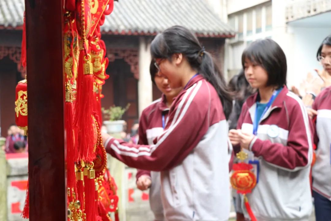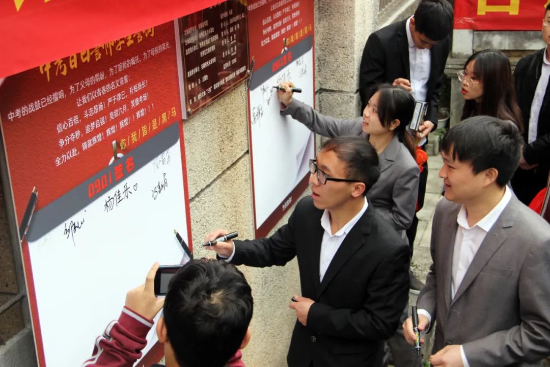 懸掛許愿結,初三年級全體同學依次上臺和老師們擊掌祝福。
