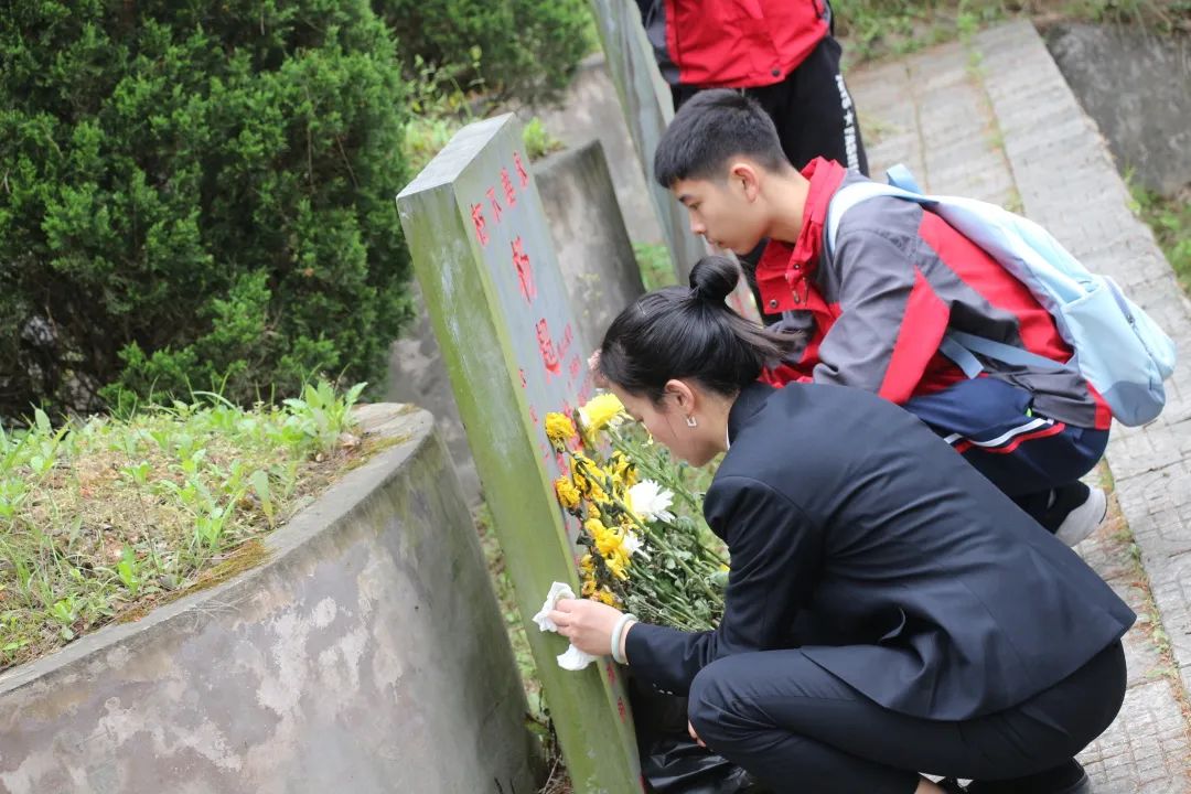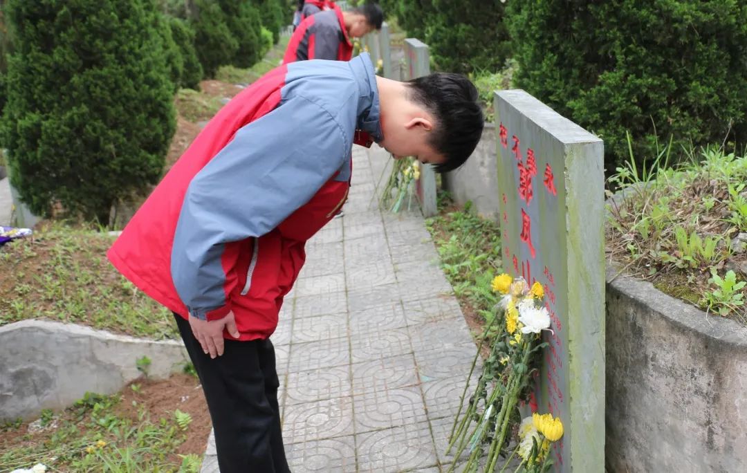 宣誓完畢,師生們滿懷景仰之情,近前為英烈們獻(xiàn)花,仔細(xì)瞻仰并清潔了紀(jì)念碑,以此來(lái)表達(dá)陽(yáng)光學(xué)子們對(duì)革命英烈崇敬感恩和敬仰之心,最后對(duì)著烈士碑深深鞠躬后依依不舍地離開(kāi)了烈士陵園。
