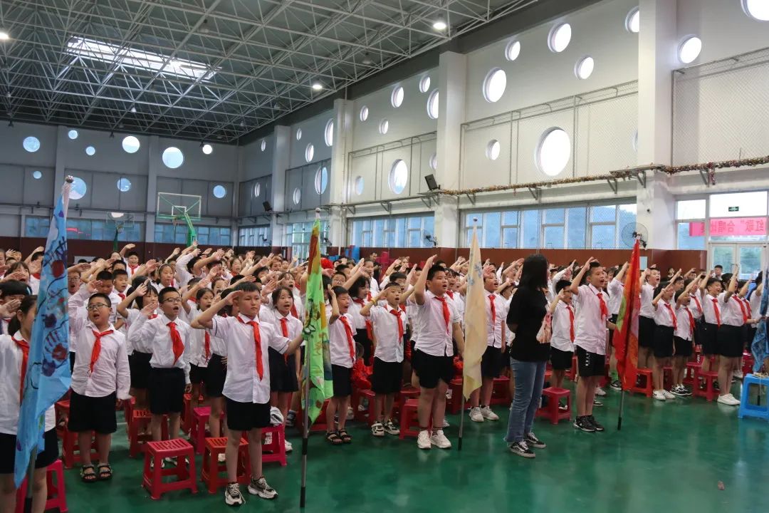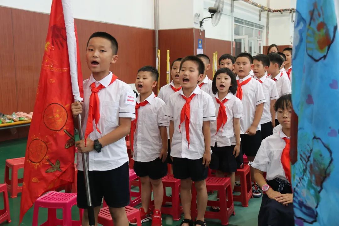 校領(lǐng)導(dǎo)為少先隊(duì)長(zhǎng)佩戴臂章
