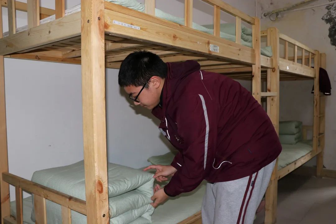 除了班主任、導(dǎo)師,安順陽(yáng)光未來(lái)學(xué)校還有負(fù)責(zé)學(xué)生宿舍管理的生活老師,每天會(huì)進(jìn)行檢查、打分評(píng)估,激勵(lì)學(xué)生學(xué)會(huì)收拾整理衛(wèi)生。