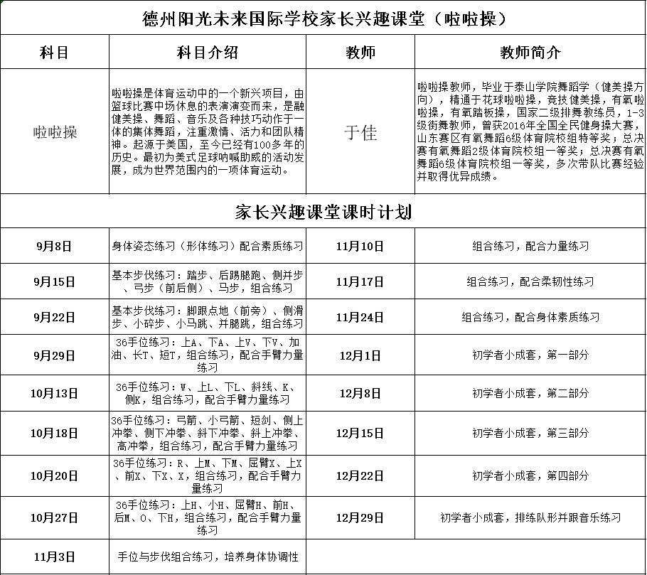 陽光家長幸福課堂的四大宗旨 一人上學,全家上學,我校為全體家長提供一站式服務。 家長和孩子一起學習,讓家長為孩子樹立榜樣,從而讓孩子感受到榜樣的力量。 通過家長課堂,提升家長的藝術(shù)素養(yǎng)和家庭教育的水平。 全體健身,讓每一位家長用最陽光和年輕的心態(tài)面對孩子、面對生活、面對未來。