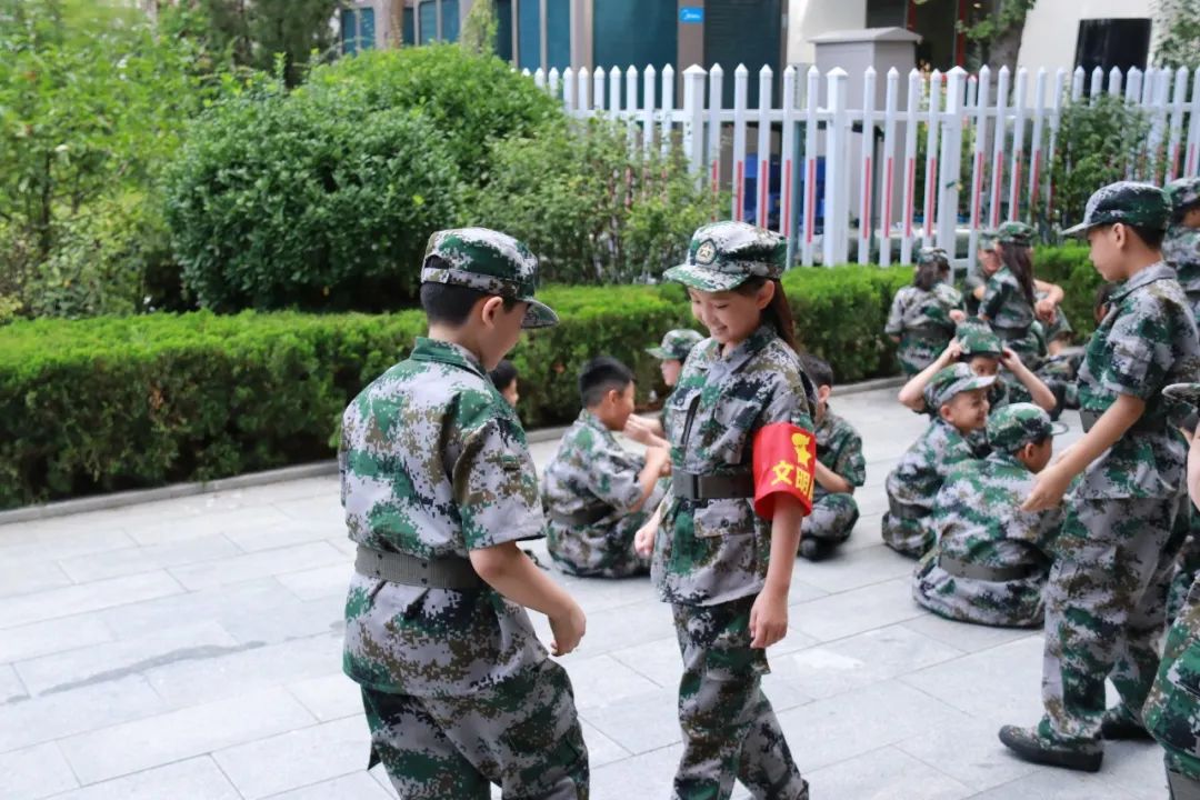 嚴(yán)明的紀(jì)律,嚴(yán)格的要求,緊張的節(jié)奏,以及辛苦的訓(xùn)練,這就是軍訓(xùn)生活的幾大特點(diǎn),相信“掉皮掉肉不掉隊(duì),流血流汗不流淚”這句格言已經(jīng)成為同學(xué)們心里面最具有震撼力的座右銘。 漫長的軍姿,踢不完的正步,挨不完的訓(xùn)斥,使同學(xué)們慢慢變得堅(jiān)強(qiáng),嚴(yán)肅的訓(xùn)練場使我們每個(gè)同學(xué)英姿颯爽,但絕沒有矯揉造作,有的是勇敢、堅(jiān)強(qiáng)。 幾天的訓(xùn)練中,同學(xué)們個(gè)個(gè)精神抖擻,意氣風(fēng)發(fā),認(rèn)真聽從教官的教導(dǎo)進(jìn)行操練,認(rèn)真地完成每一次立正、轉(zhuǎn)身、起立、蹲下……教官對(duì)同學(xué)們認(rèn)真指導(dǎo),對(duì)每個(gè)動(dòng)作都一絲不茍地做好示范,不厭其煩。別看這些三四年級(jí)的同學(xué)年齡小,但個(gè)個(gè)儼然合格的小軍人,有模有樣。