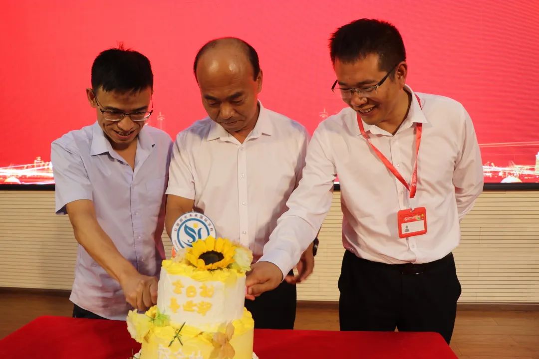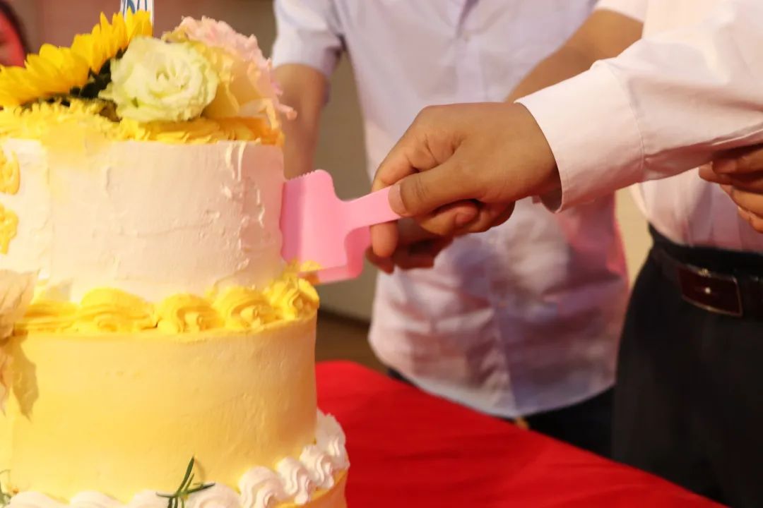致辭結(jié)束后,三位校長(zhǎng)為各位老師切分陽(yáng)光教育集團(tuán)總部特意訂做的教師節(jié)祝福蛋糕。