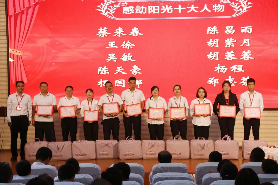 頒獎(jiǎng)儀式 大會(huì)分別對(duì)優(yōu)秀教師、優(yōu)秀班主任、最美員工、感動(dòng)陽(yáng)光十大人物、校長(zhǎng)提名獎(jiǎng)等獲獎(jiǎng)教職工進(jìn)行表彰。