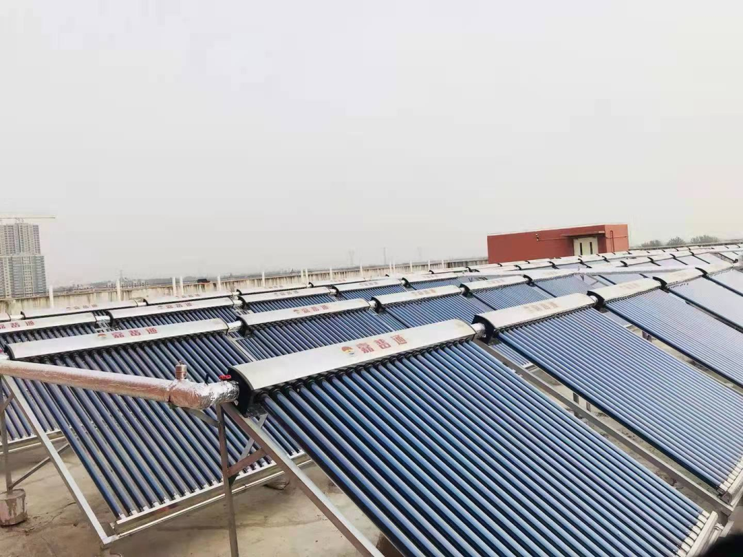 太陽能淋浴 宿舍樓配備了嘉普通的太陽能設(shè)備和電加熱,每個宿舍配備兩間淋浴室學(xué)生們不必再在千里迢迢的跑出宿舍樓去集體洗澡。