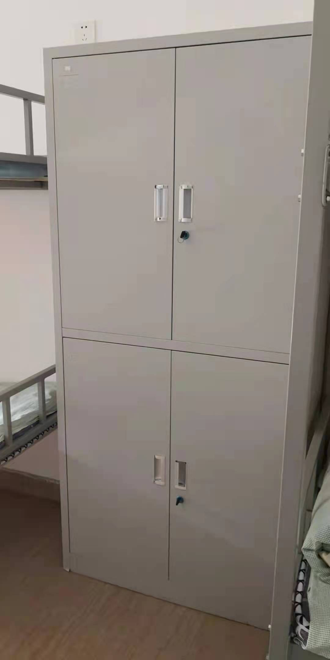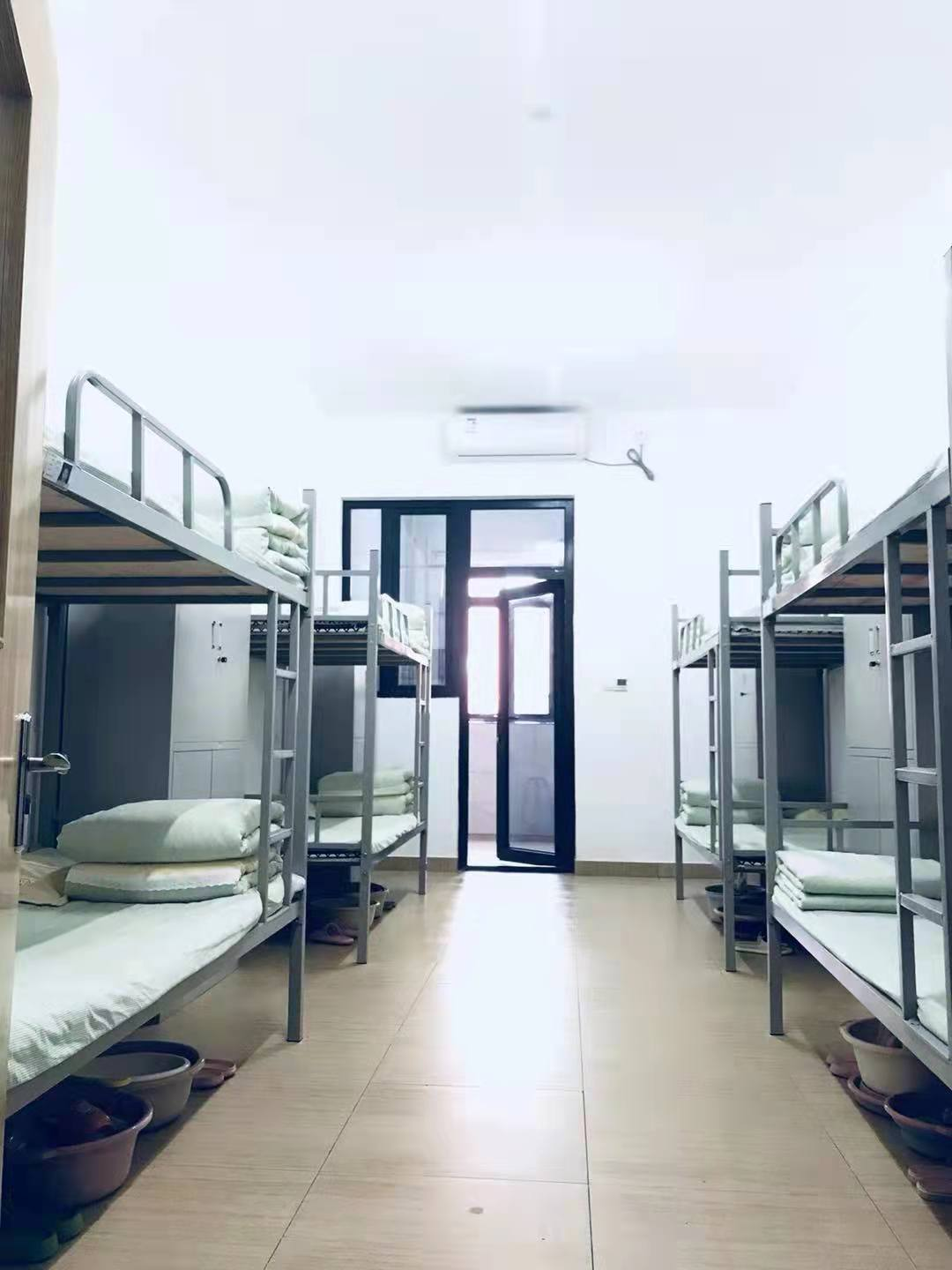 上下鋪八人間 床鋪咱們購置的是鋼木組合(含梯子)。宿舍為學(xué)生還配有鞋柜、衣物柜,鐵皮柜足以放下學(xué)生所有的雜物和衣服。 每間寢室還配備了電吹風(fēng)機、電蚊香、美的(冷暖)空調(diào)。