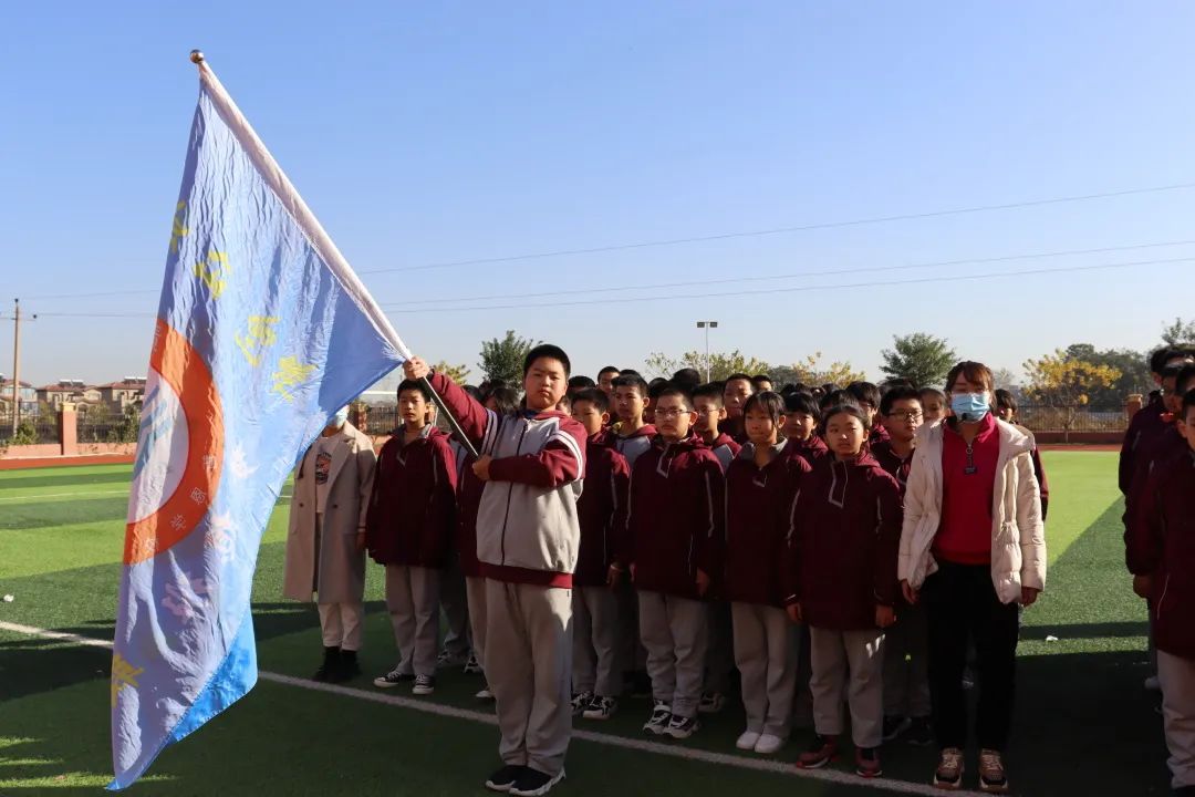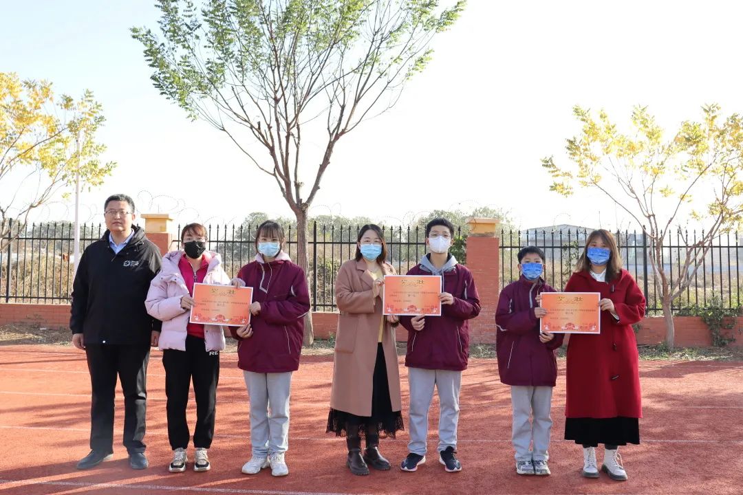 頒獎(jiǎng)儀式 14號(hào)上午大課間馬敬志校長(zhǎng)為獲勝班級(jí)頒發(fā)獎(jiǎng)狀。